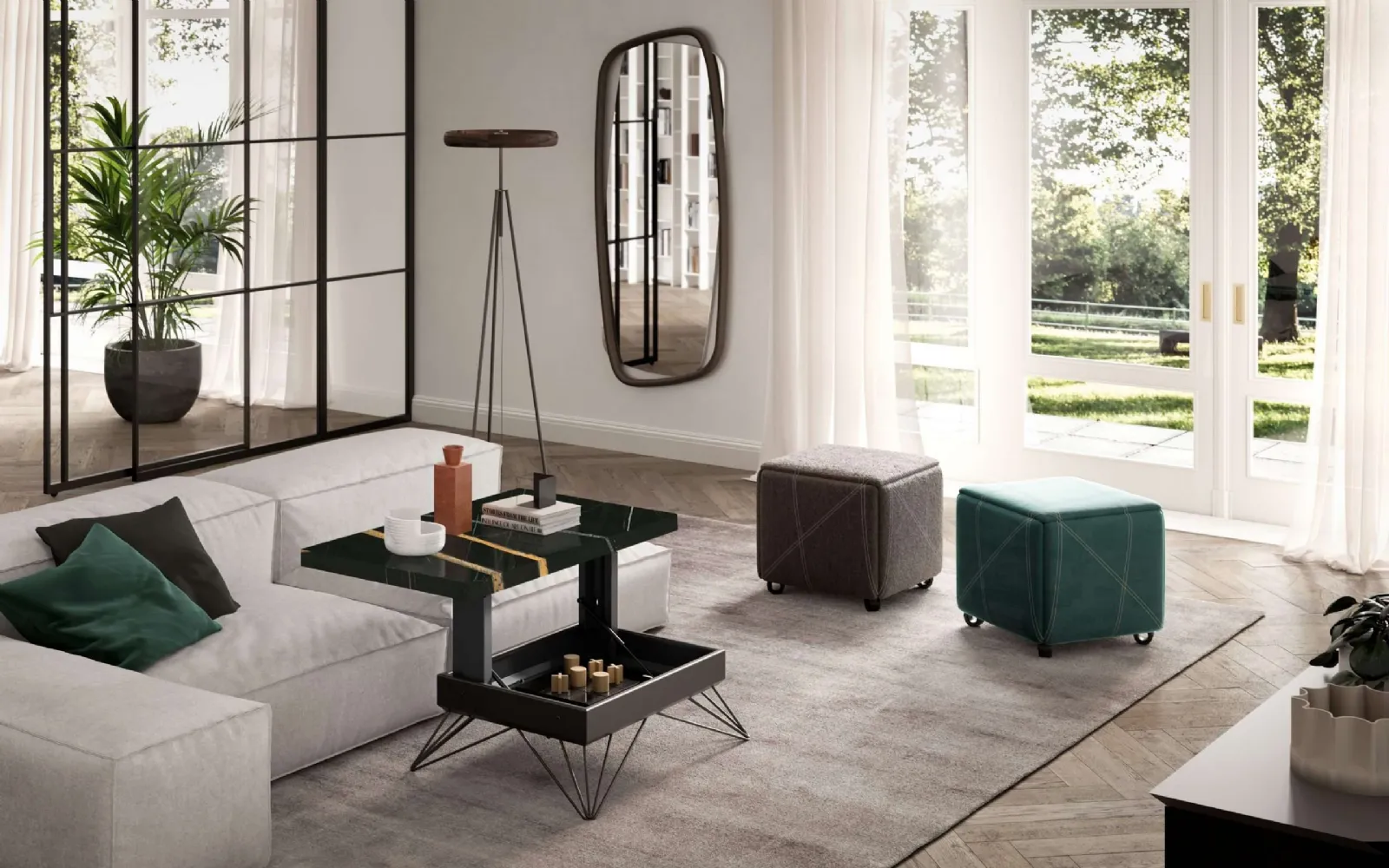Tavolino multifunzione Radius di Ozzio: clicca e scopri di più sui Complementi e tavolini moderni in vetro del rinomato brand!