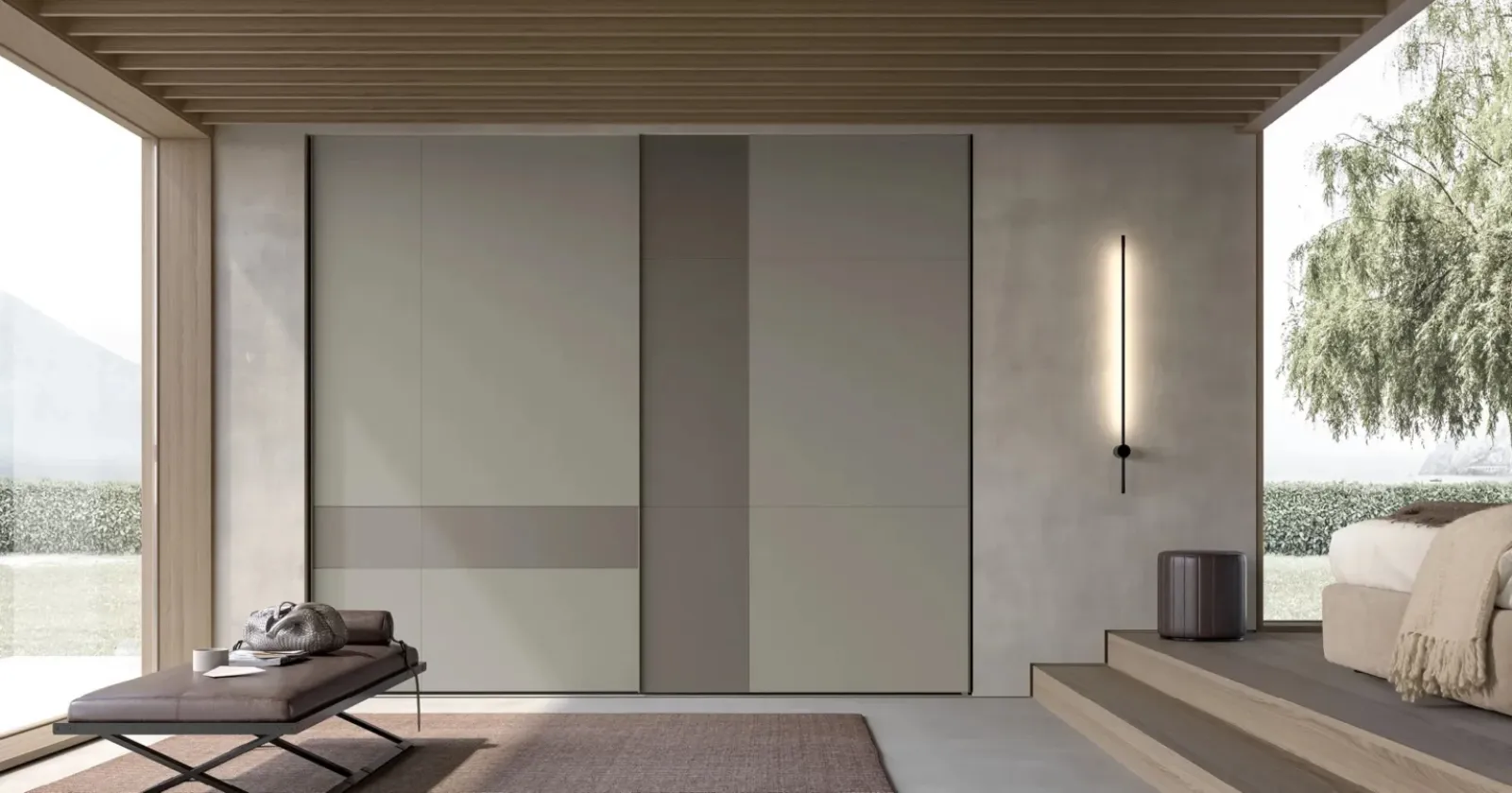 Se desideri una camera da letto arredata con gusto, scegli l'armadio Atelier con ante scorrevoli Mondrian con ante scorrevoli di Adok!