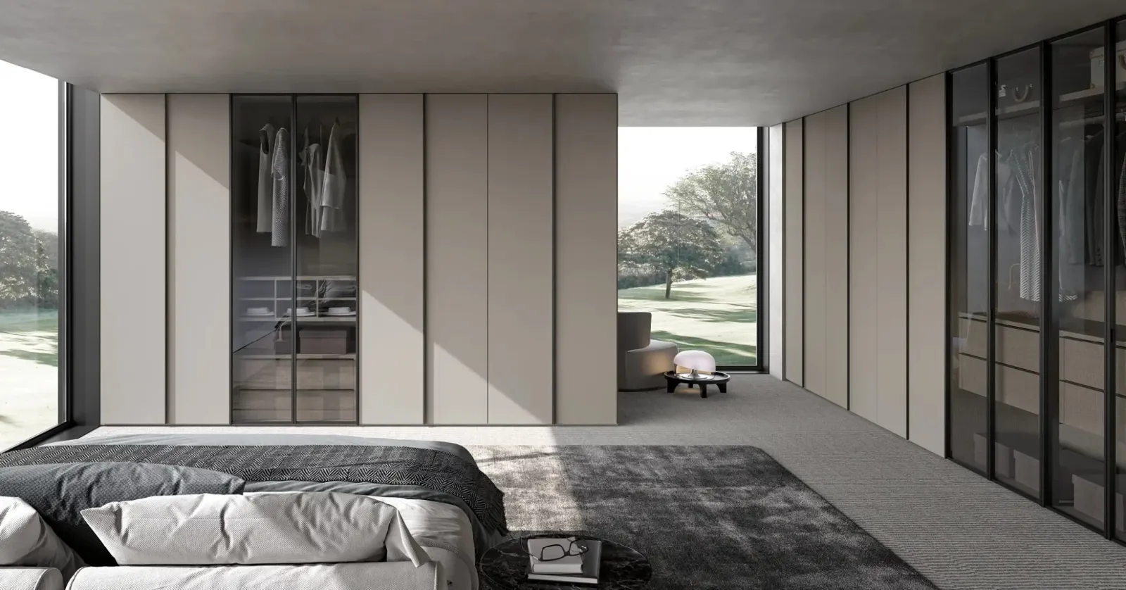 Cerchi un guardaroba in laccato opaco? Clicca e scopri armadiature a muro con ante battenti di Adok.