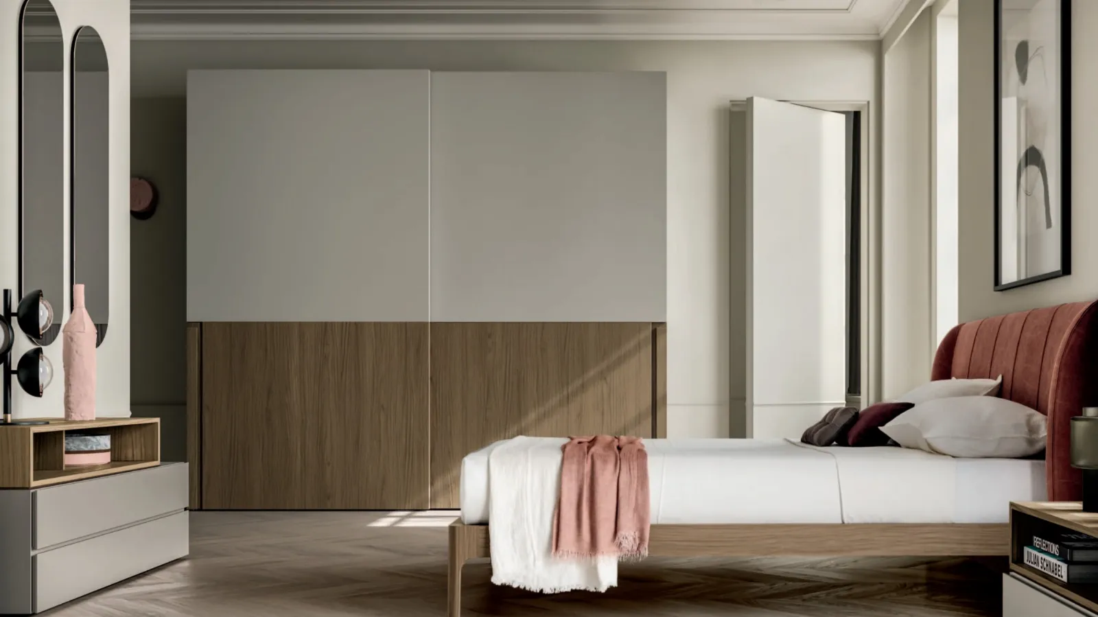 Se vuoi armadi a muro con ante scorrevoli, clicca e scopri l'armadio Boleana di SantaLucia in laccato opaco.