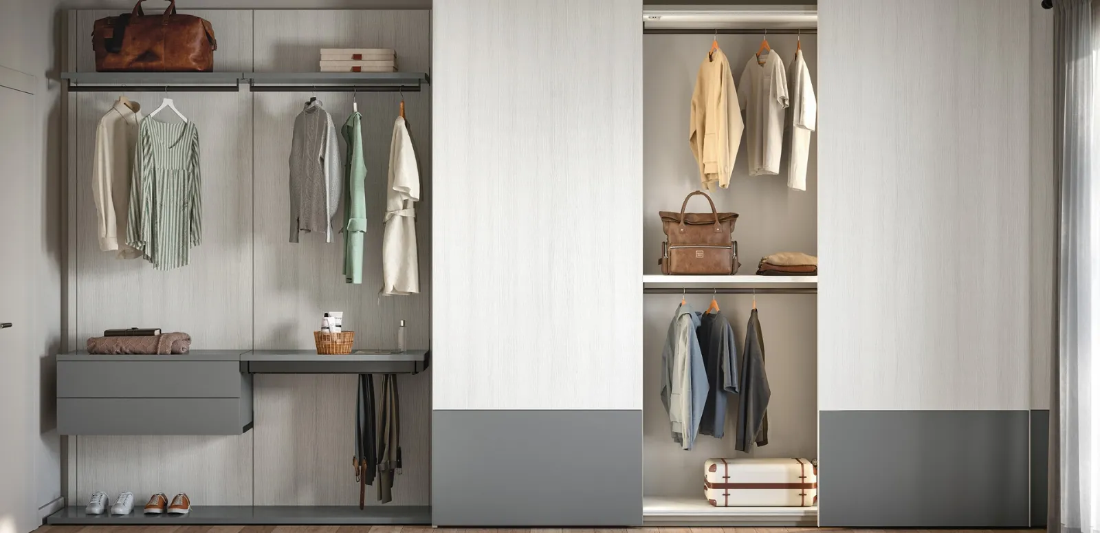 Cerchi un armadio Cabina Armadio a cremagliera 08E Cinquanta3? Clicca subito! Gli armadi cabine armadio con ante scorrevoli ti attendono.