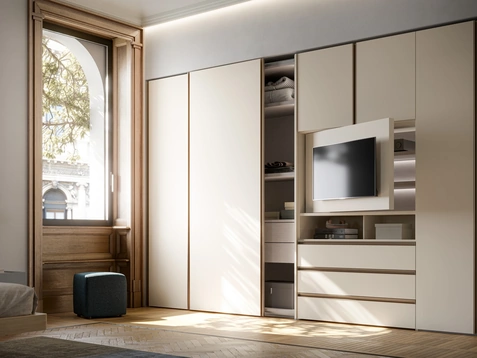 Ecco qui l'armadio Cabina Armadio Up&Down Rovere Caramel in melaminico di Adok! Un ricco catalogo di armadi ad angolo con ante scorrevoli.