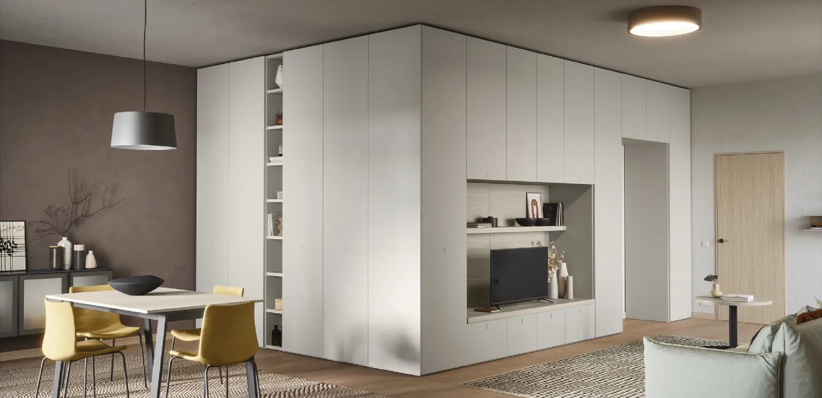 Se vuoi armadiature ad angolo con ante battenti, clicca e scopri l'armadio Armadio 05C di Cinquanta3 in melaminico.