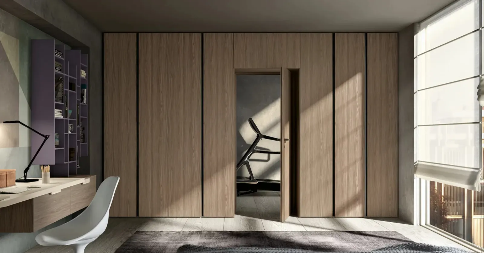Se sei alla ricerca di armadi su misura con ante battenti, clicca e scopri l'armadio Intermezzo bifacciale con porta di Adok in melaminico.