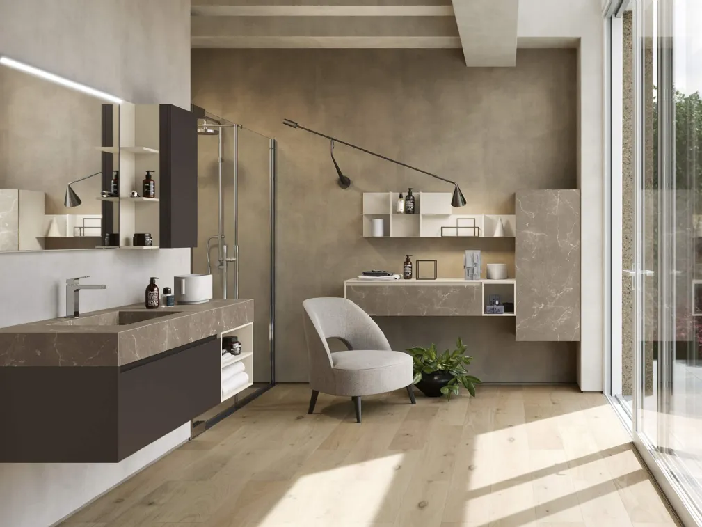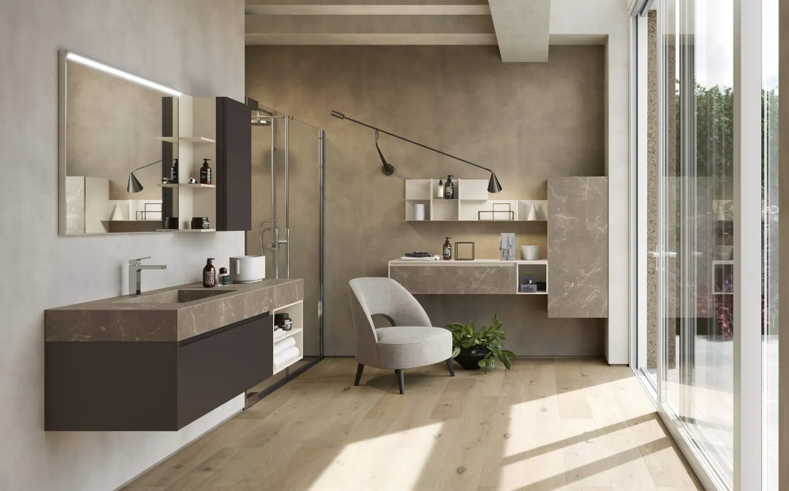 Arreda la stanza del benessere moderno al meglio con 3Punto0 100, mobili bagno sospesi e complementi in HPL di Rab Arredobagno.