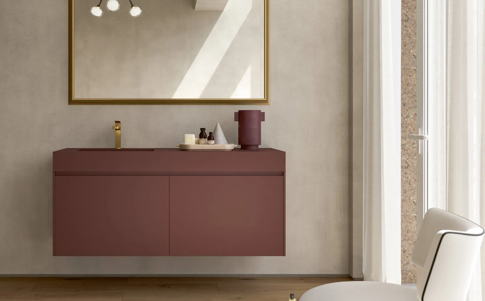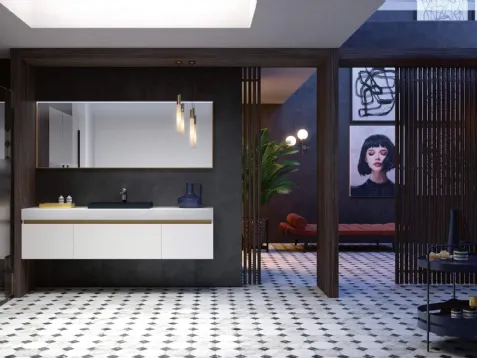 Arreda la stanza del benessere moderno perfettamente con 3Punto0 116, mobili bagno sospesi e oggetti in laccato opaco di Rab Arredobagno.