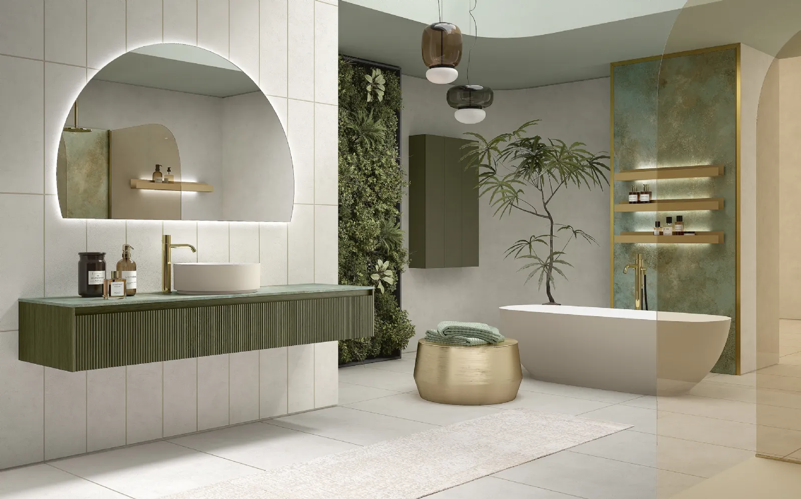 Mobili bagno sospesi in legno della firma Rab Arredobagno: clicca e scopri l'arredo bagno design Blend 607 per la stanza del benessere.