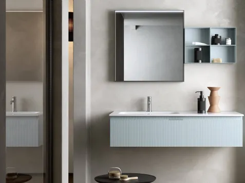 Arreda la stanza del benessere design alla perfezione con Facto 04, mobili bagno sospesi e accessori in gres di Birex.