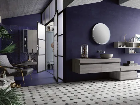 Scopri di più sull'arredo bagno moderno: mobili bagno a terra in resina minerale come il modello Formalia in PET Pioggia di Scavolini Bathrooms ti aspettano.