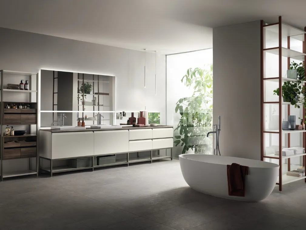 Arreda il bagno di casa moderno perfettamente con Formalia Laccato Opaco Bianco, mobili bagno a terra e oggetti in laccato opaco di Scavolini Bathrooms.