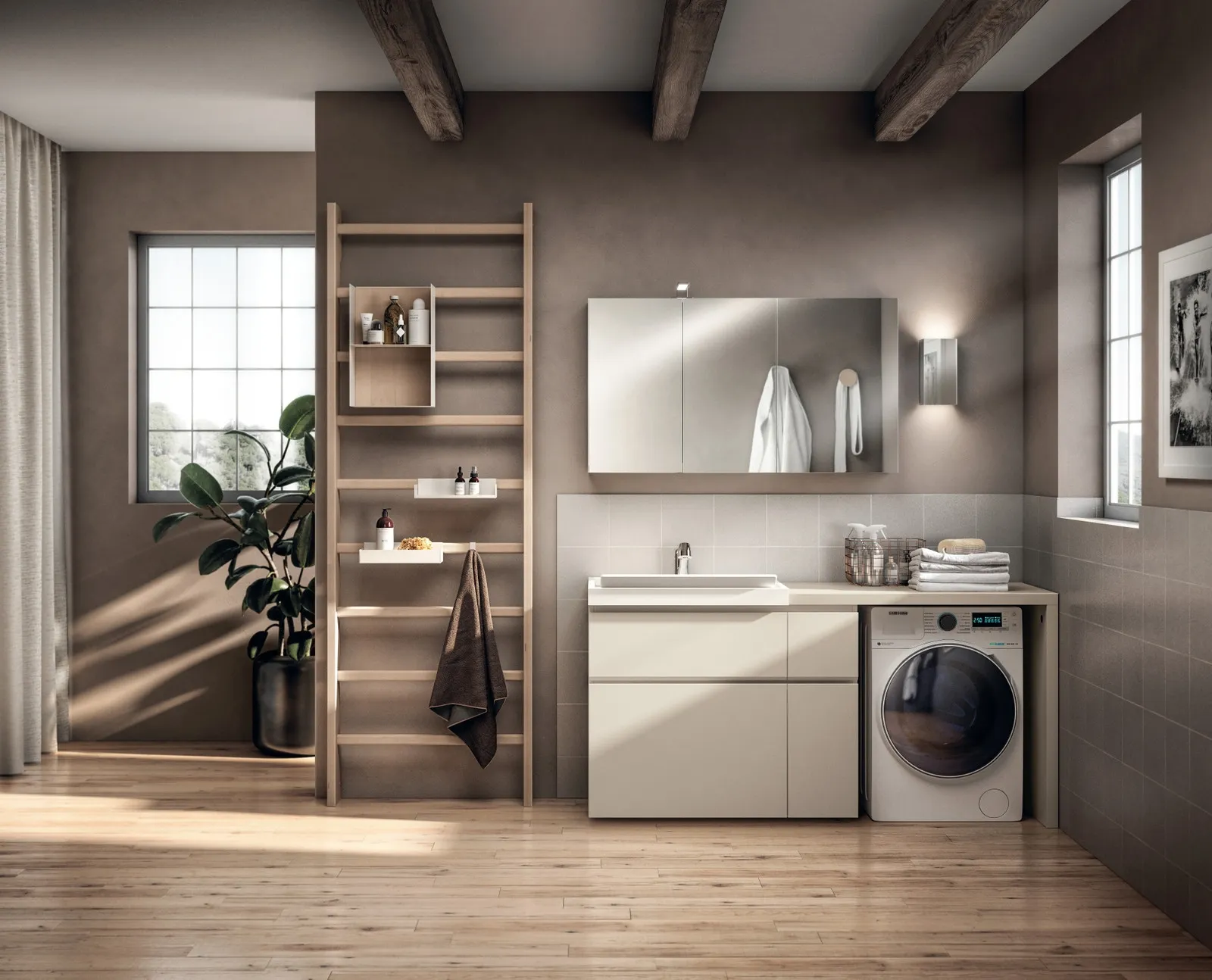 Mobili bagno per lavanderia Gym Space Decorativo Grigio Gabbiano di Scavolini Bathrooms: scopri l'Arredo Bagno in melaminico moderno e arreda la stanza del benessere.