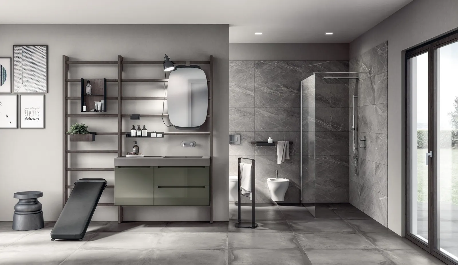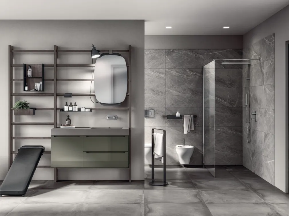 Mobili bagno sospesi Gym Space Laccato Lucido Verde Minerale di Scavolini Bathrooms: scopri l'Arredo Bagno in laccato lucido design e arreda il bagno di casa.