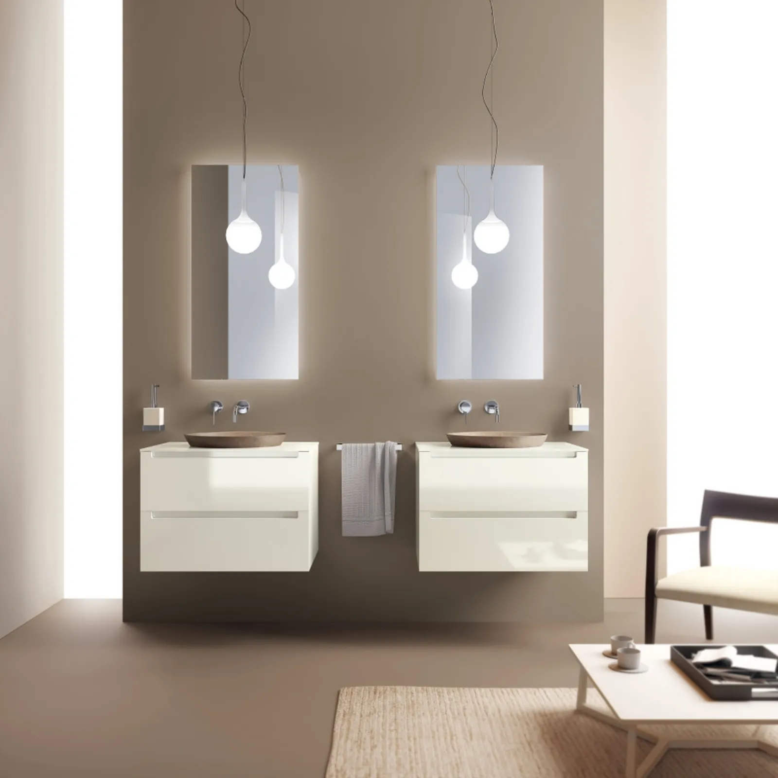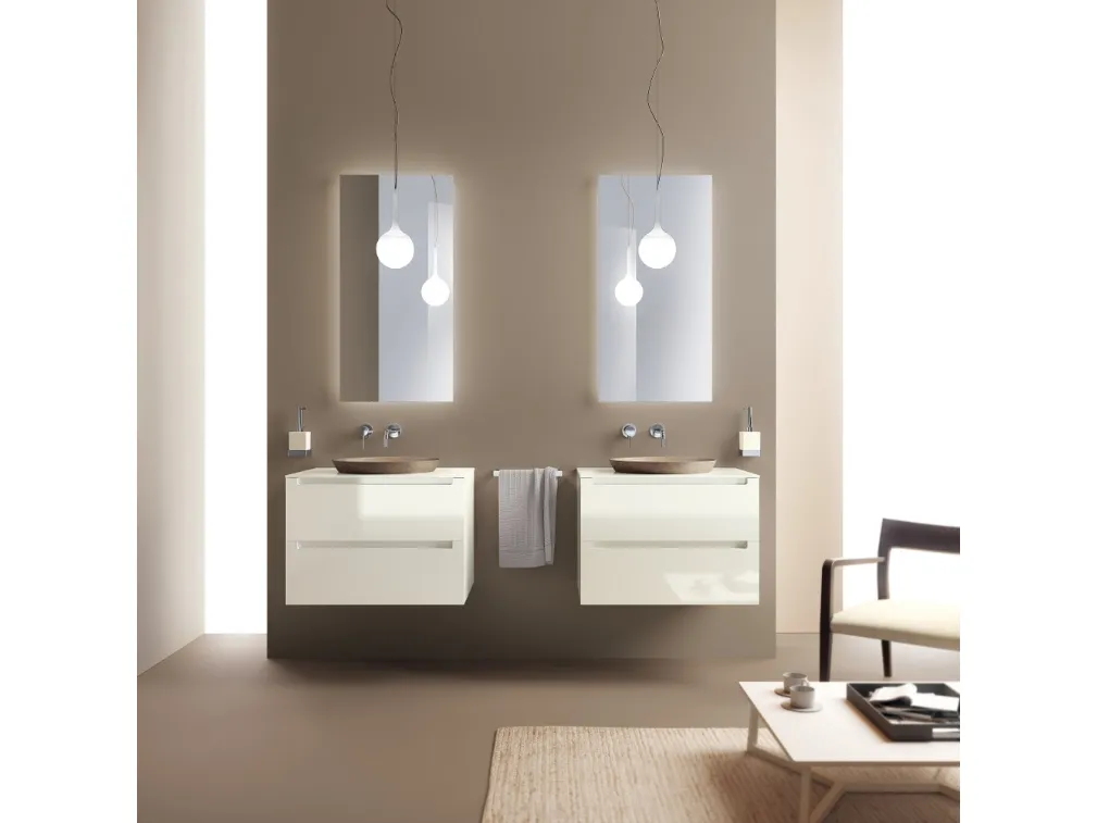 Mobili bagno sospesi in laccato lucido dell'azienda Scavolini Bathrooms: clicca e scopri l'arredo bagno moderno Idro Laccato Lucido Bianco Prestige per la stanza del benessere.