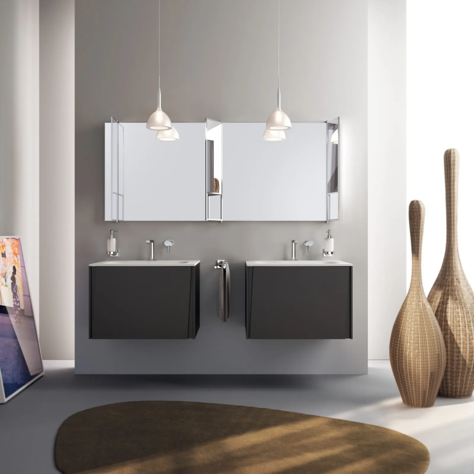Ottieni informazioni sull'arredo bagno moderno: mobili bagno sospesi in laccato opaco come il modello Lagu Laccato Opaco Grigio Ferro di Scavolini Bathrooms ti attendono.