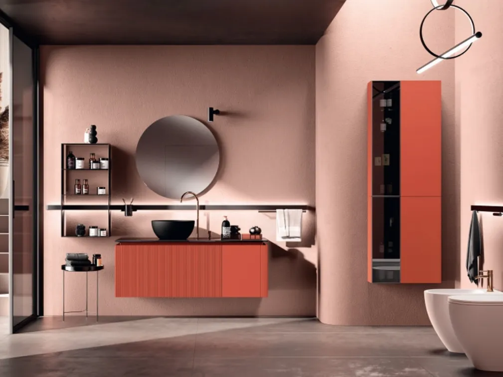 Scopri di più sull'arredo bagno design: mobili bagno sospesi in laccato opaco come il modello Lido Laccato Opaco Rosso Marocco Dogato di Scavolini Bathrooms ti aspettano.