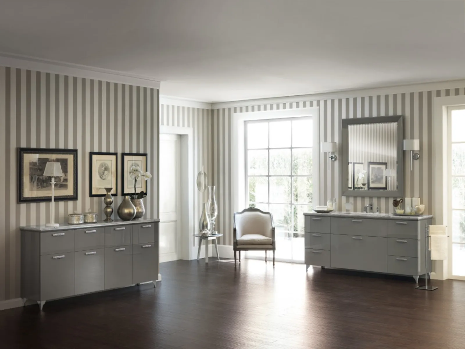 Mobili bagno a terra Magnifica Laccato Lucido Grigio Titanio di Scavolini Bathrooms: scopri l'Arredo Bagno in laccato lucido classico e arreda la stanza del benessere.