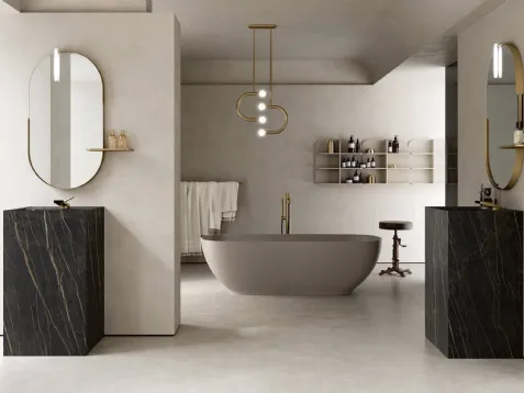 Scopri di più sull'arredo bagno design: mobili bagno a terra in laccato lucido come il modello Magnifica Laccato Lucido Grigio Tundra di Scavolini Bathrooms ti aspettano.