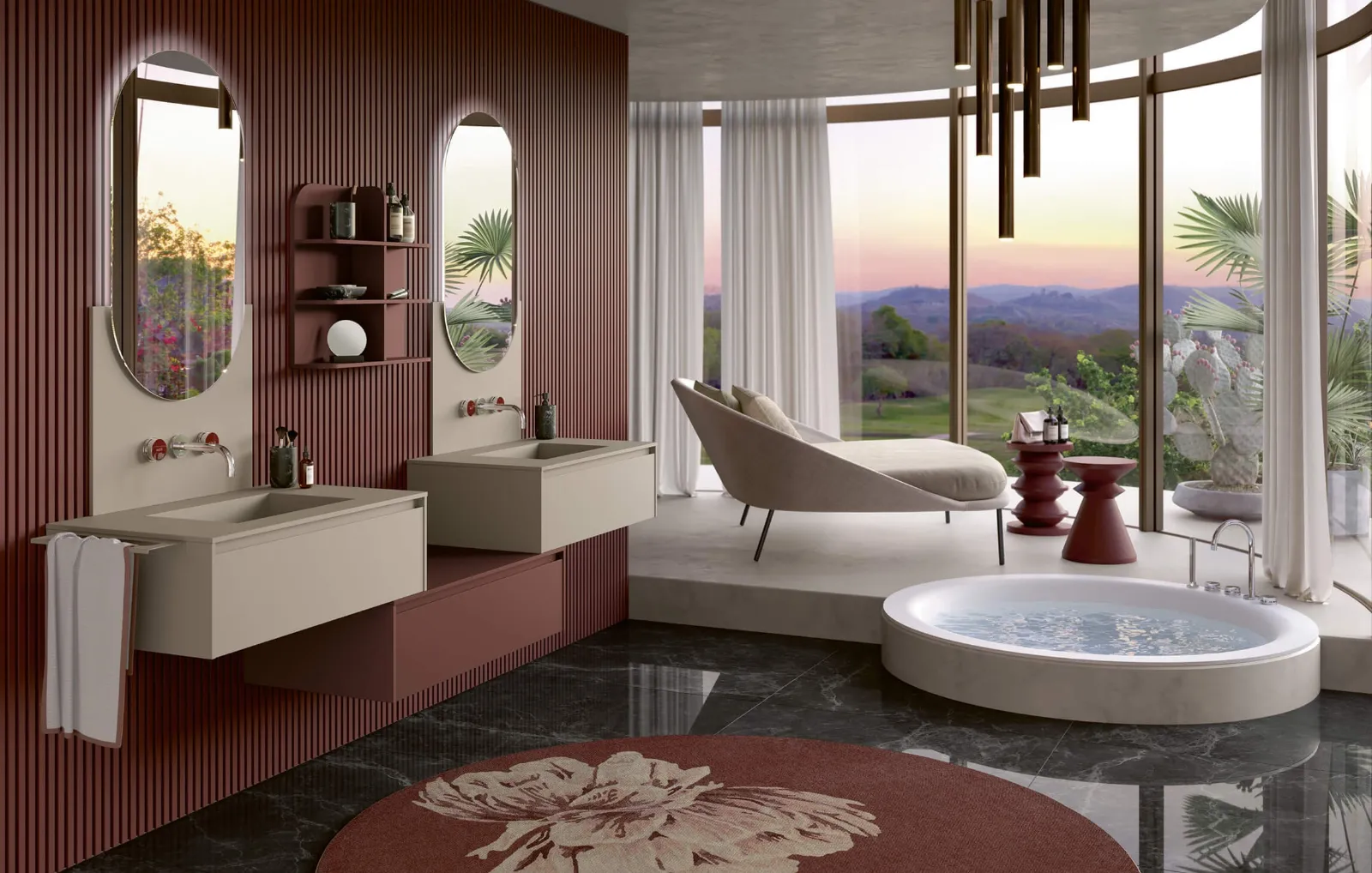 Arreda la stanza del benessere moderno ottimamente con 3Punto0 117, mobili bagno sospesi e oggetti in laccato opaco di Rab Arredobagno.