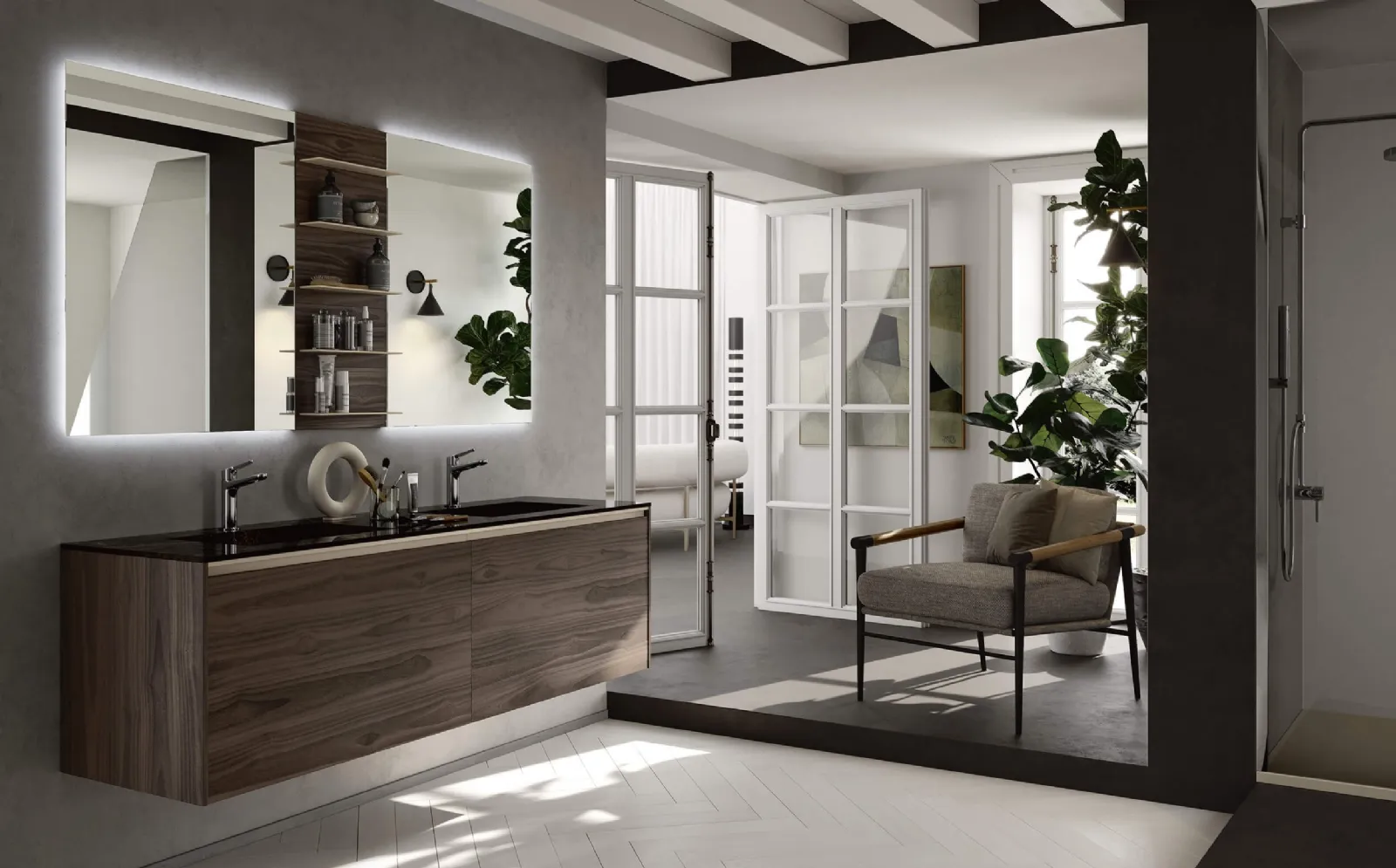 Ottieni informazioni sull'arredo bagno moderno: mobili bagno sospesi in melaminico come il modello Soul Wood 105 di Rab Arredobagno ti aspettano.