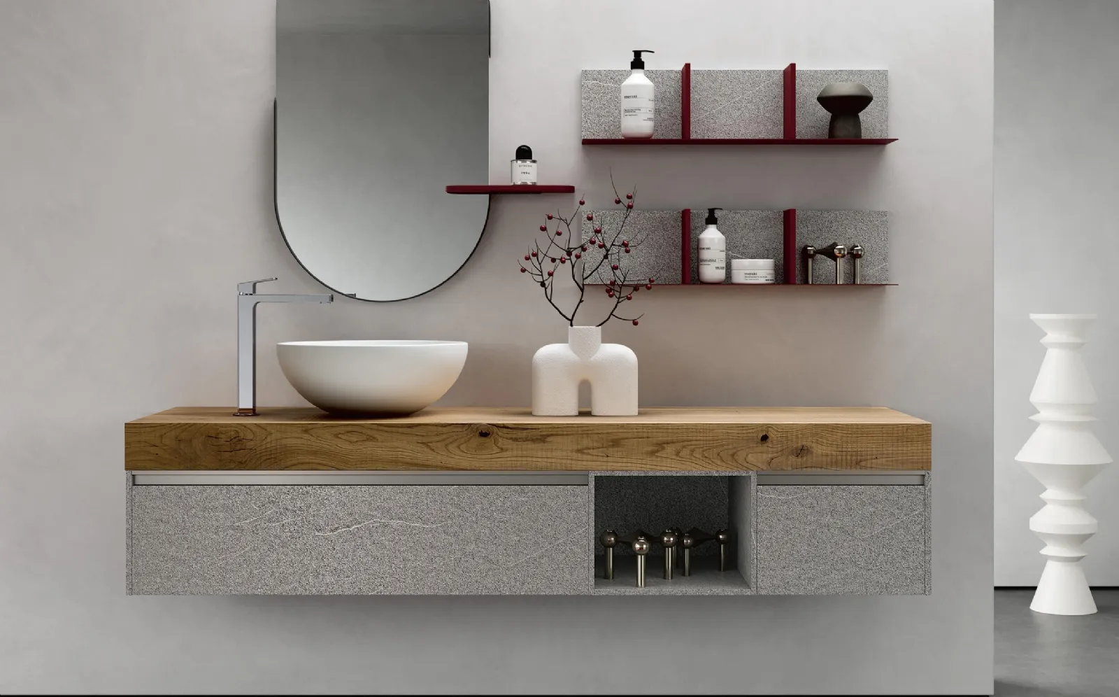 Ottieni informazioni sull'arredo bagno moderno: mobili bagno sospesi in pietra come il modello Soul Wood 106 di Rab Arredobagno ti attendono.