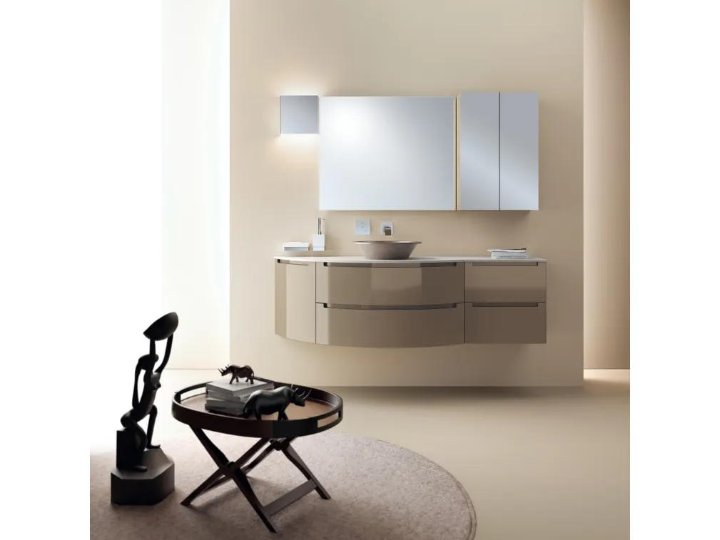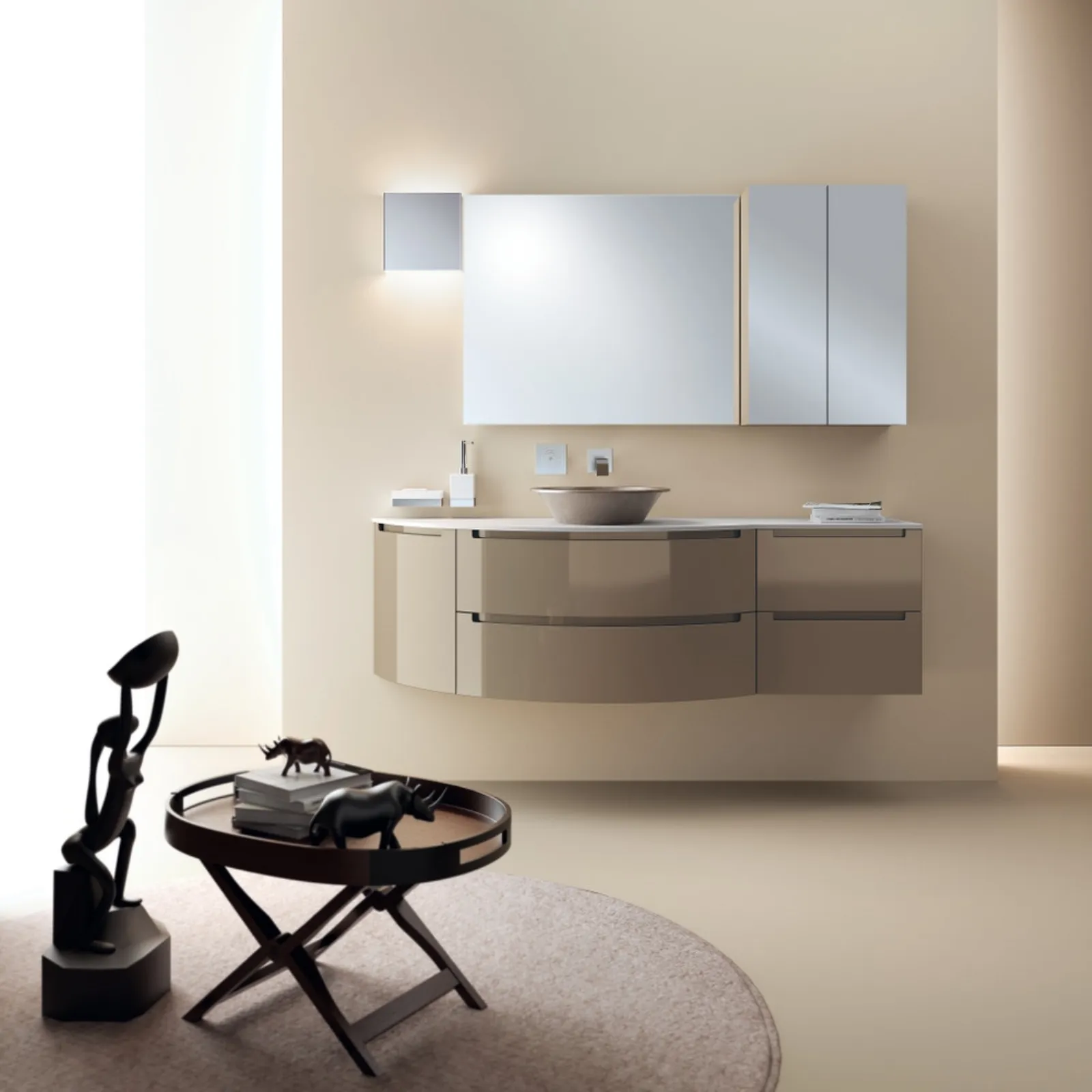 Mobili bagno sospesi in laccato lucido del brand Scavolini Bathrooms: clicca e scopri l'arredo bagno moderno Idro Laccato Lucido Grigio Tundra per la stanza del benessere.