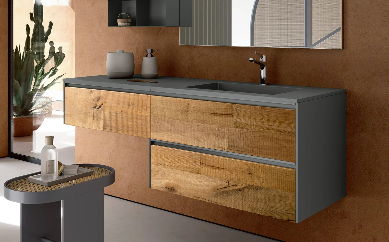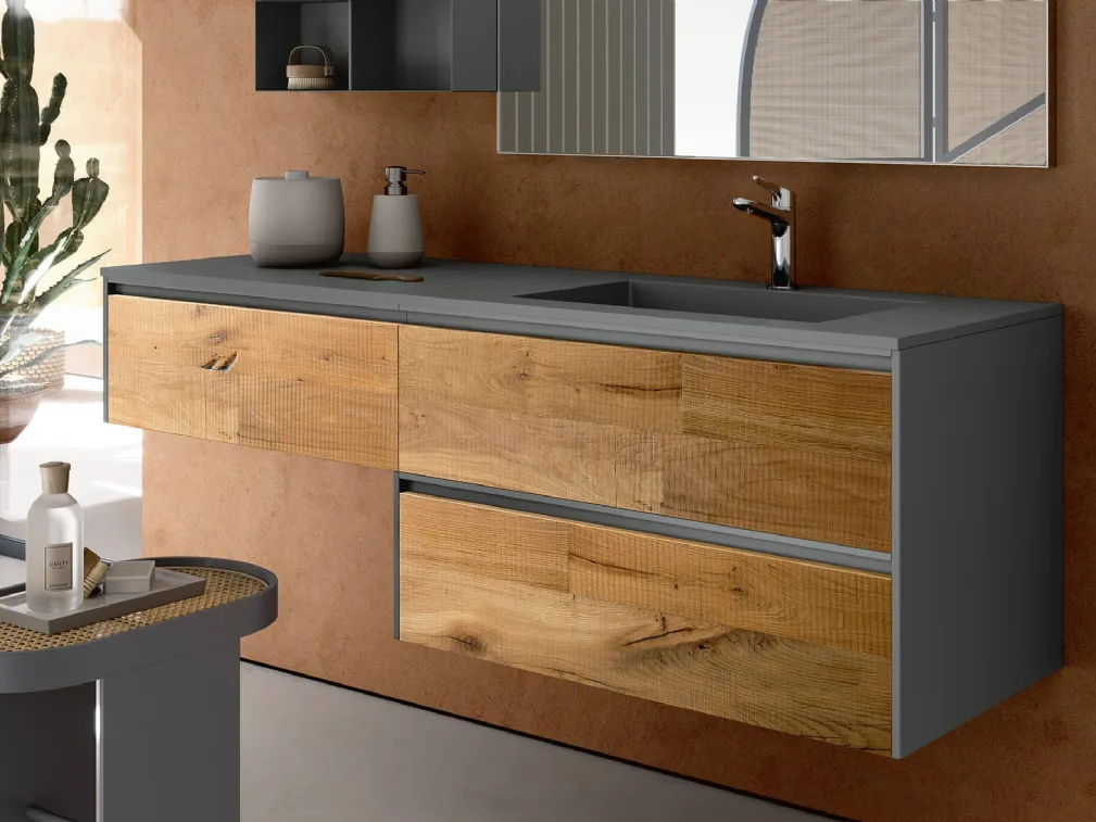 Ottieni informazioni sull'arredo bagno moderno: mobili bagno sospesi in legno come il modello Soul Wood 102 di Rab Arredobagno ti aspettano.