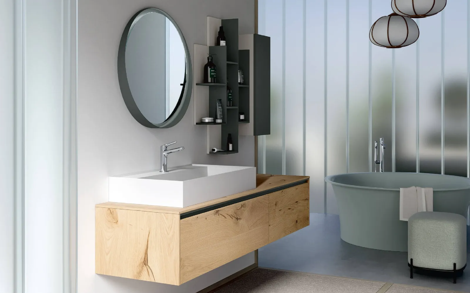 Arreda il tuo bagno moderno ottimamente con Soul Wood 122, mobili bagno sospesi e oggetti in legno di Rab Arredobagno.