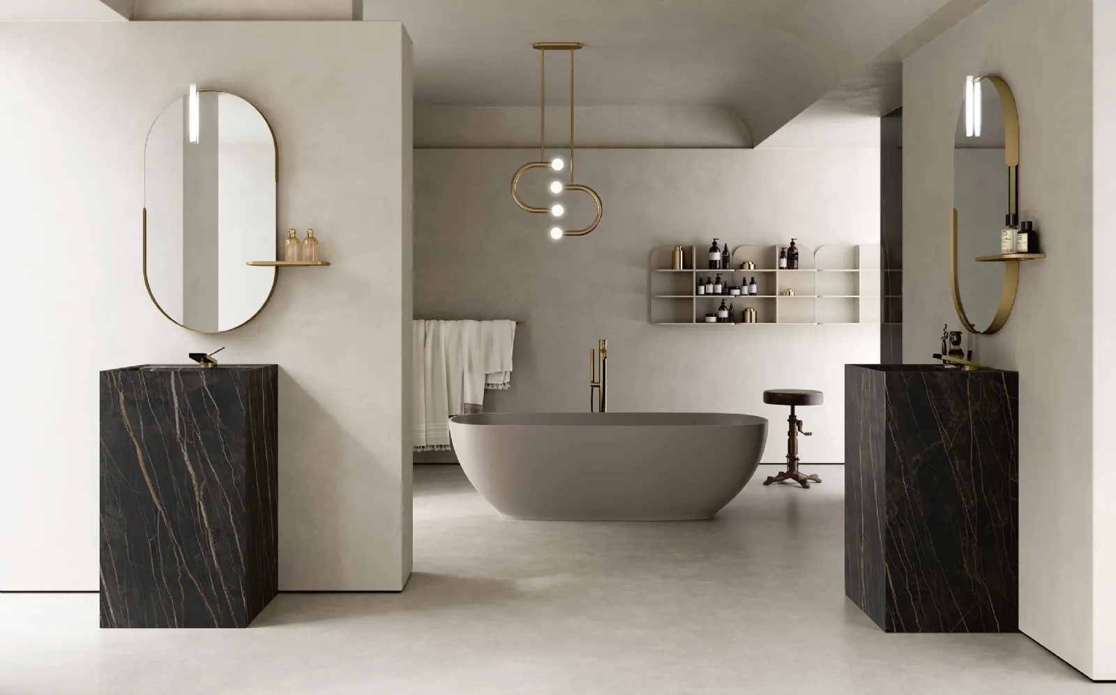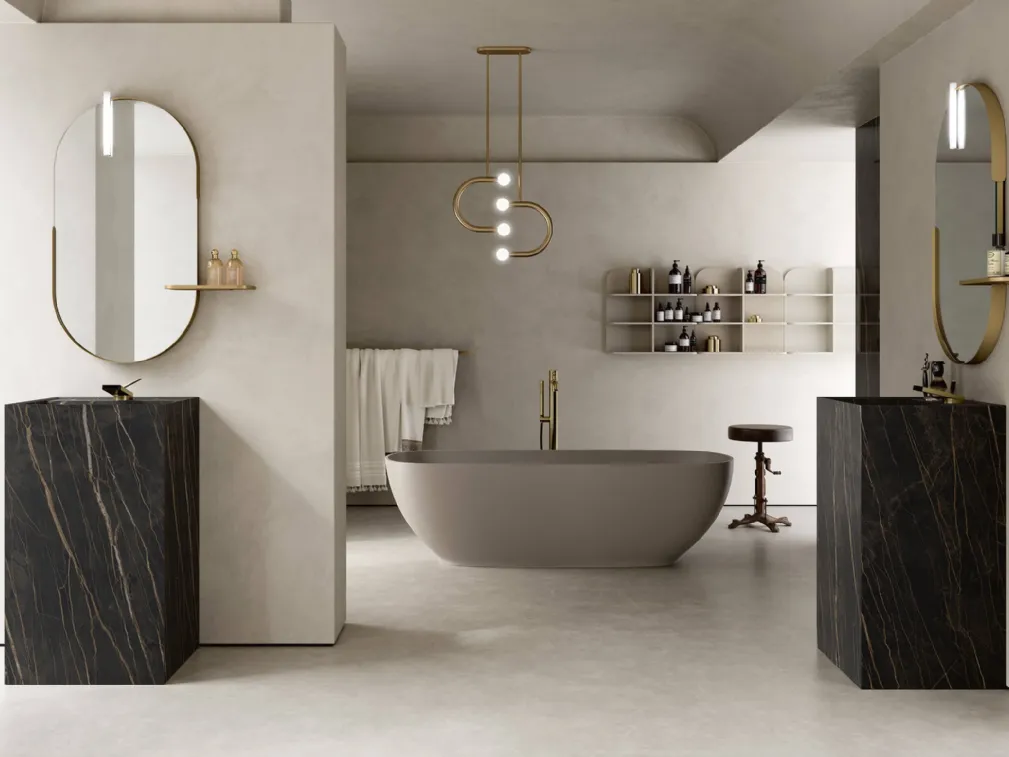 Arreda la stanza del benessere design perfettamente con Soul Wood 125, mobili bagno da appoggio e complementi in gres di Rab Arredobagno.