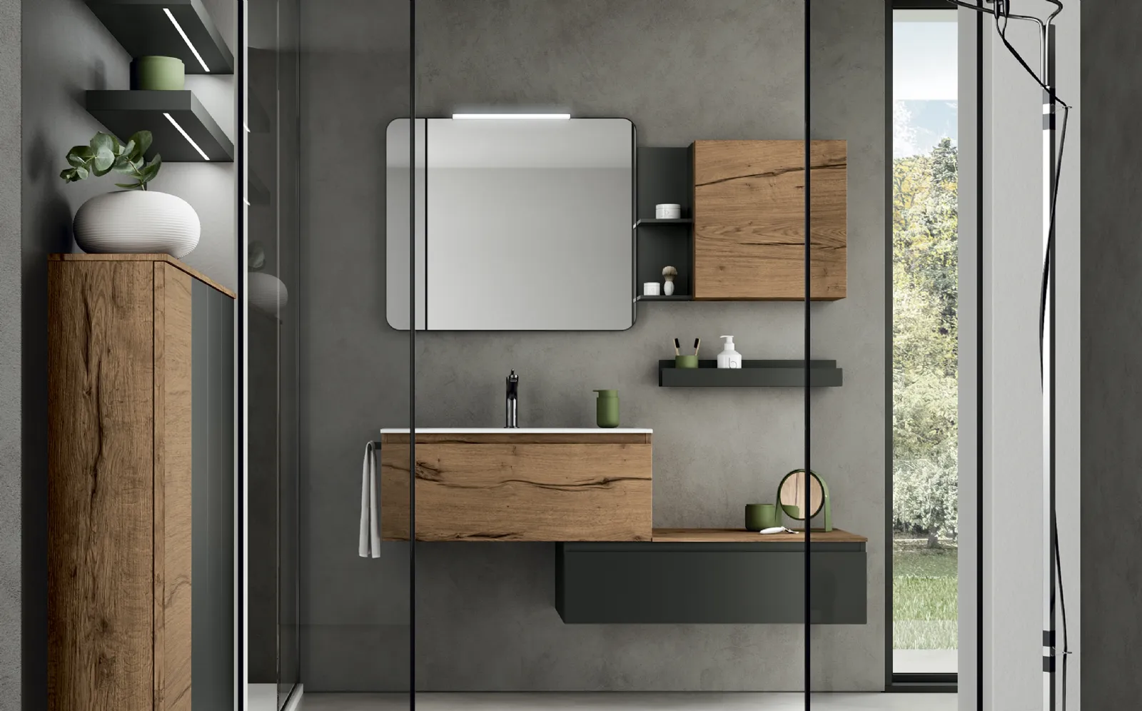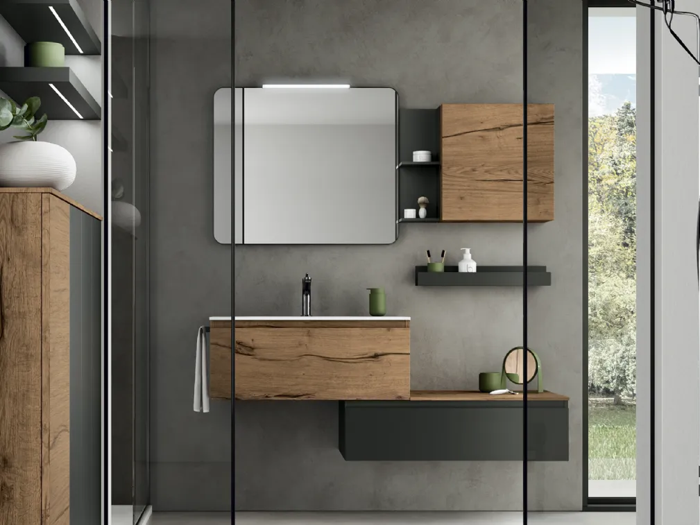 mobili bagno sospesi in melaminico del brand Rab Arredobagno: clicca e scopri l'arredo bagno moderno Thai 303 per il tuo bagno.