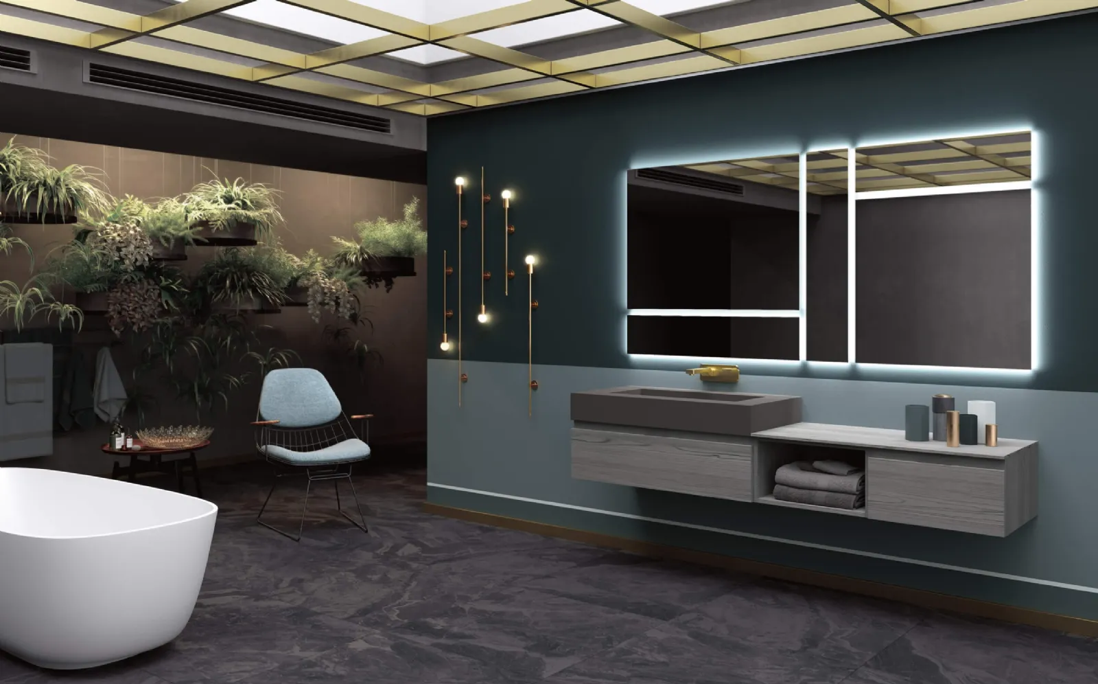 Mobili bagno sospesi Thai 316 di Rab Arredobagno: scopri l'Arredo Bagno in materico moderno e arreda la stanza del benessere.