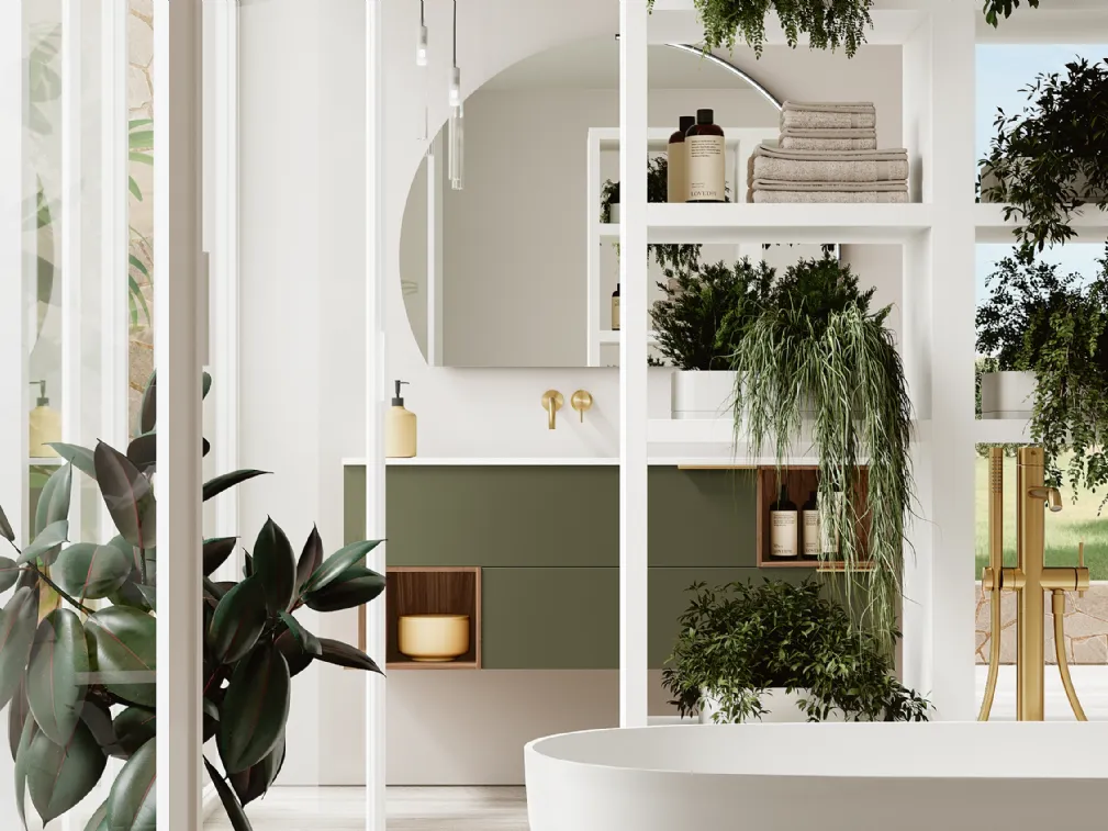 Mobile da Bagno sospeso Thai 409 di Rab Arredobagno: clicca e scopri di più su mobili bagno sospesi in laccato opaco e elementi accessori dell'azienda.