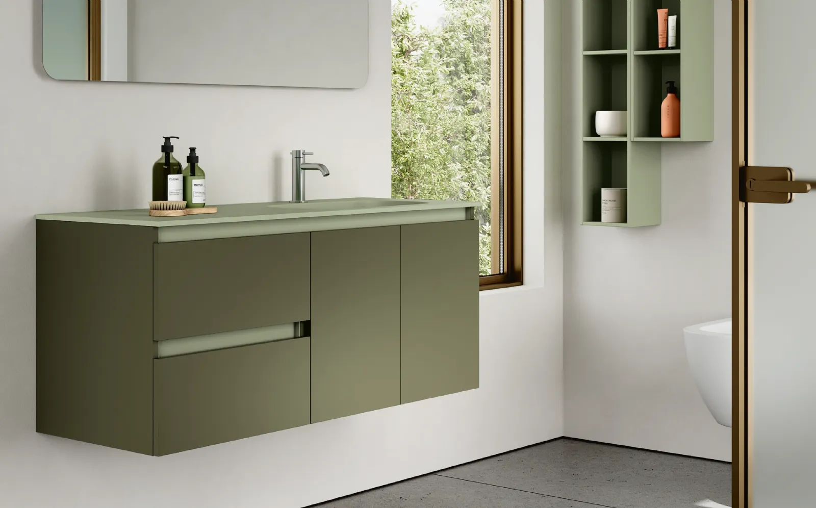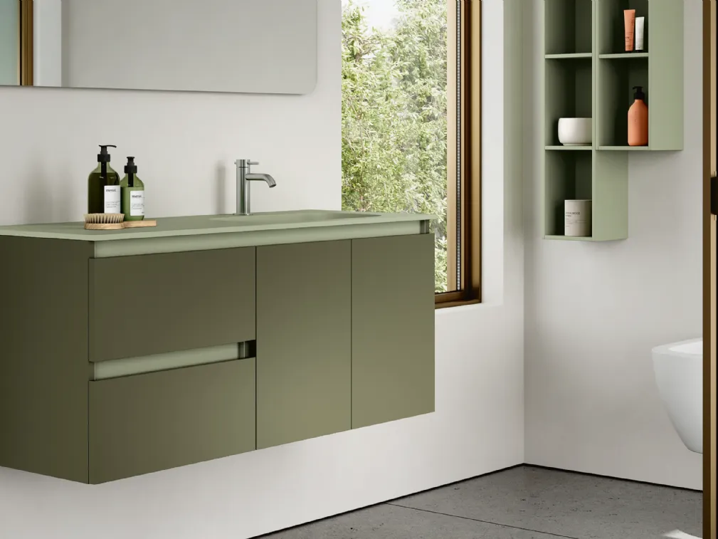 mobili bagno sospesi in laccato opaco dell'azienda Rab Arredobagno: clicca e scopri l'arredo bagno moderno Thai 412 per il tuo bagno.