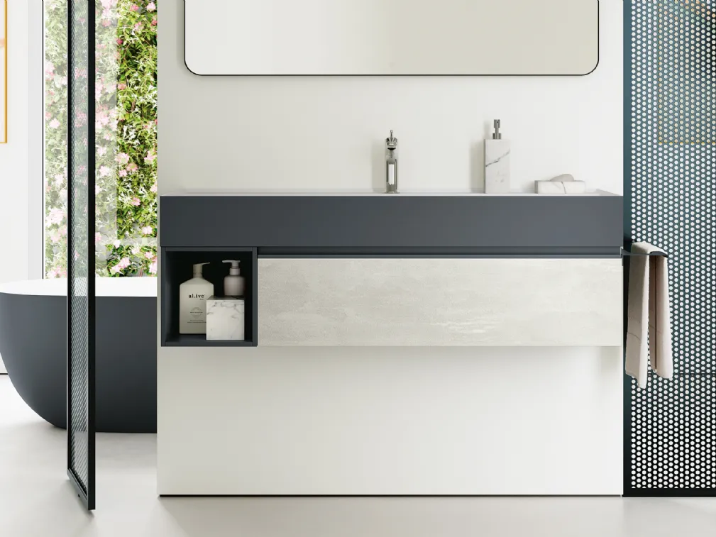 mobili bagno sospesi Thai 415 di Rab Arredobagno: scopri l'Arredo Bagno in melaminico moderno e arreda il bagno di casa.