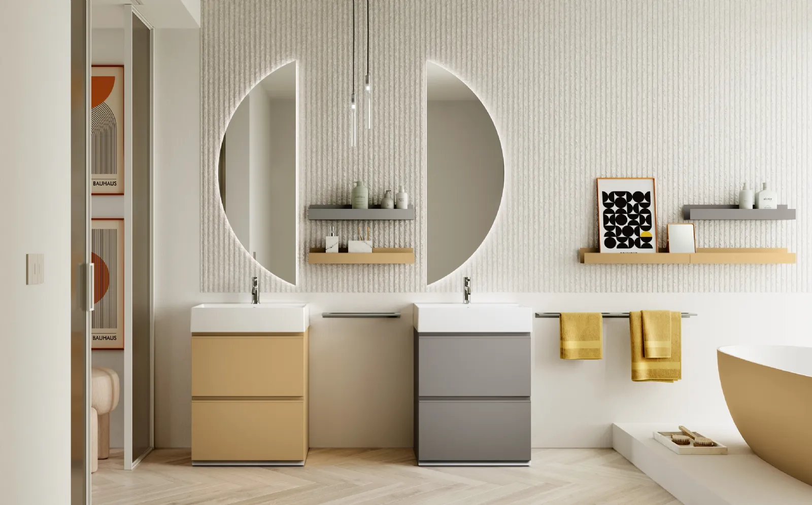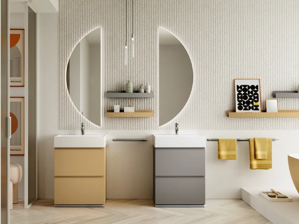 mobili bagno a terra Thai 421 di Rab Arredobagno: scopri l'Arredo Bagno in laccato opaco moderno e arreda il bagno di casa.