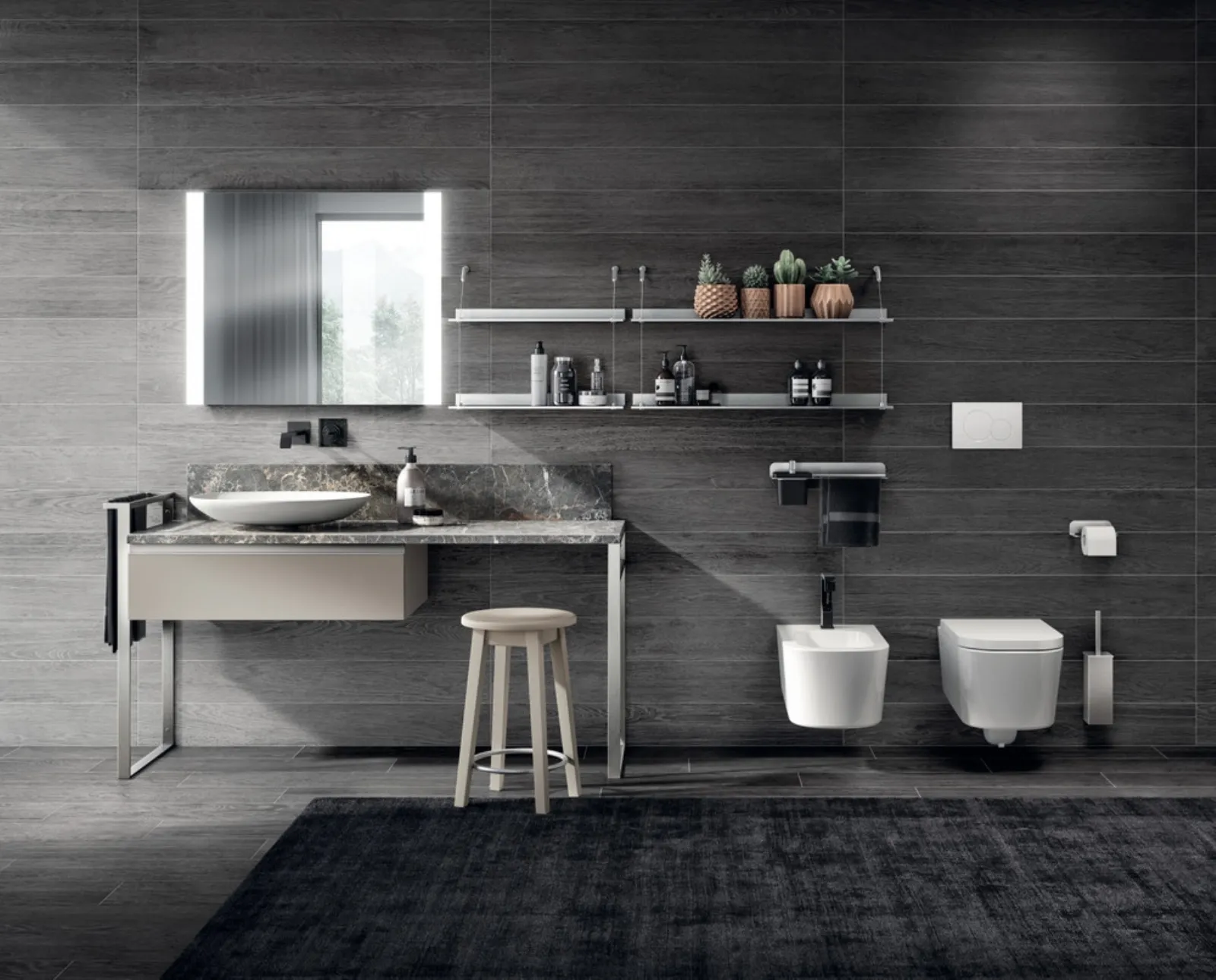 Mobili bagno a terra in laccato opaco della marca Scavolini Bathrooms: clicca e scopri l'arredo bagno moderno Tratto Laccato Opaco Visone per la stanza del benessere.