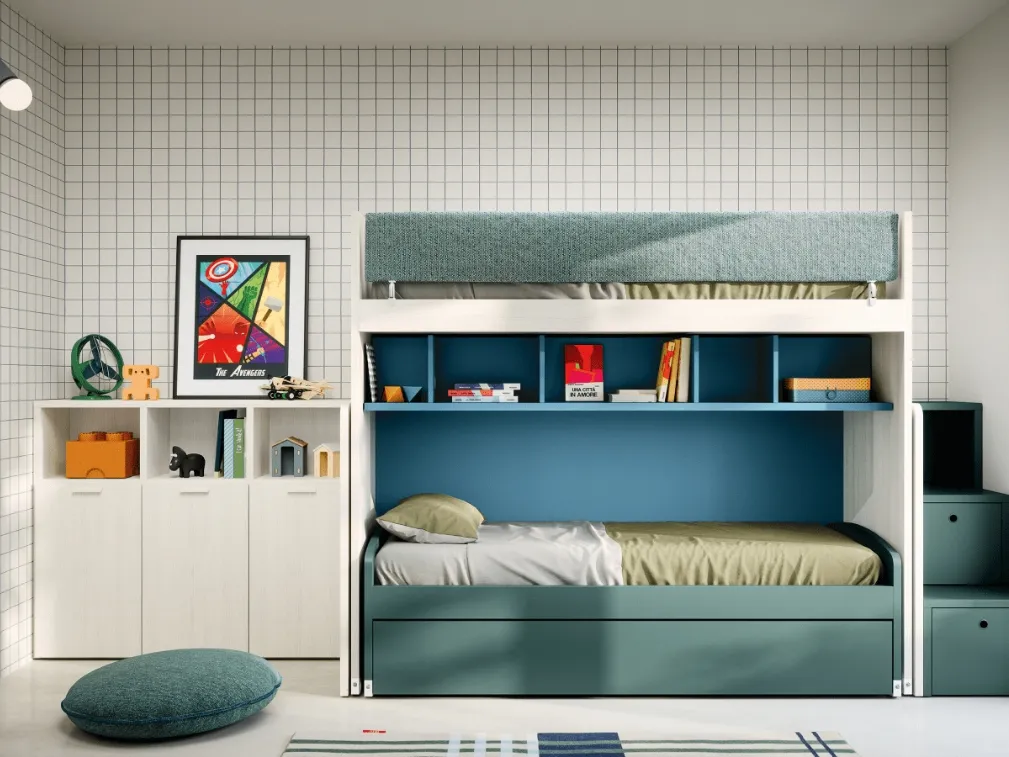 Camerette con letti a castello per bambini: scopri il modello in melaminico Kids space 12 di Nidi per stanzette moderne.
