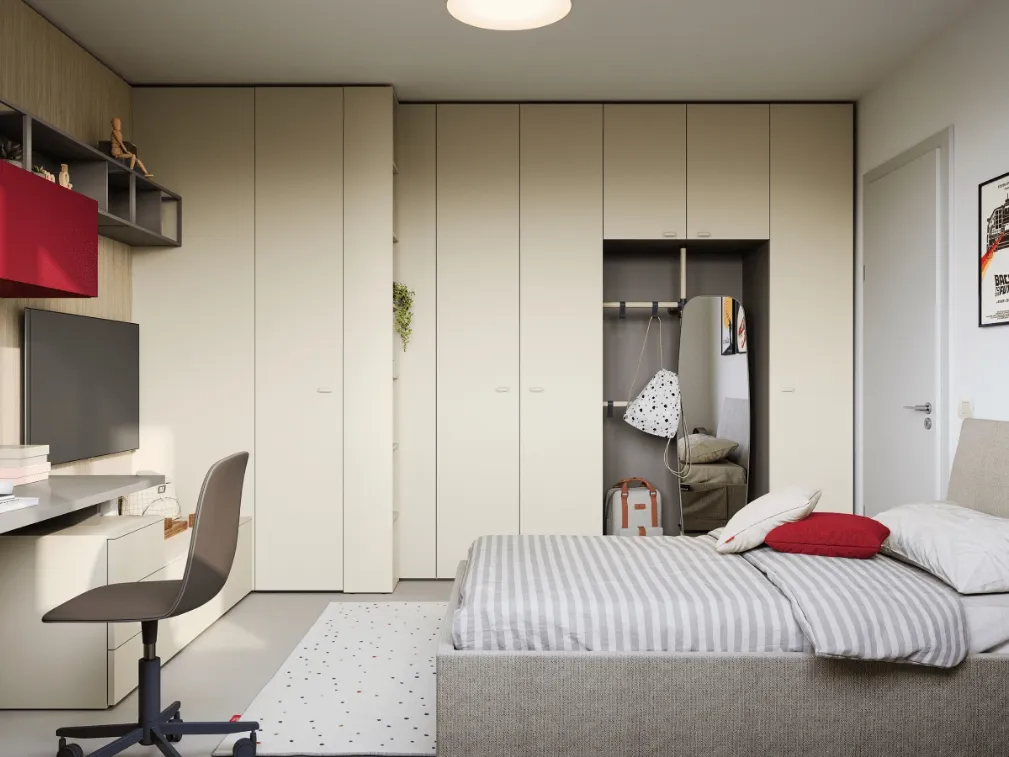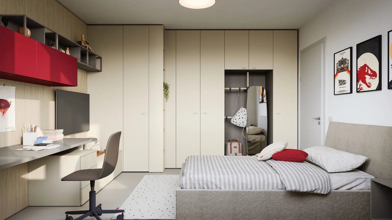 Con questa cameretta Next Space 24 Nidi, tra le soluzioni componibili, potrai arredare stanze moderne per ragazzi.