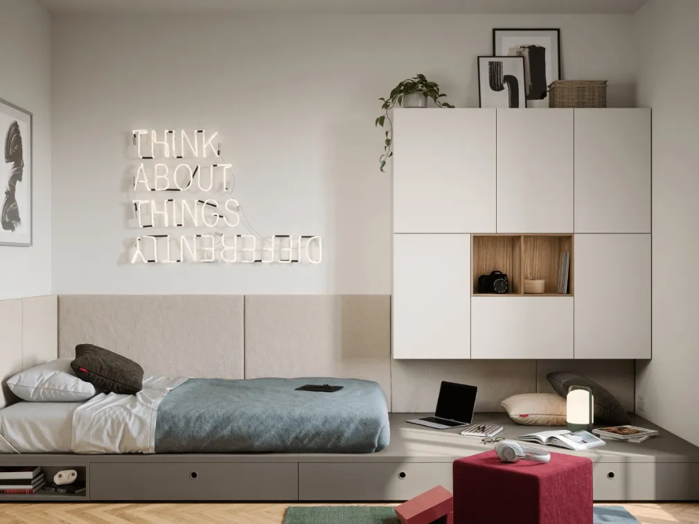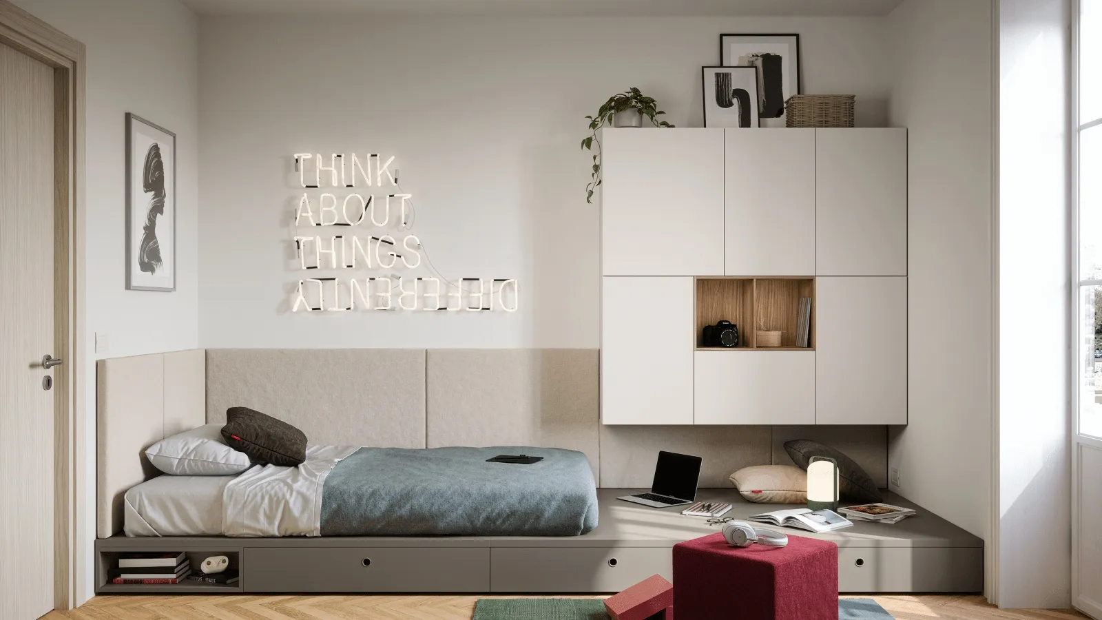 Con questa cameretta Next Space 27 Nidi, tra le soluzioni su misura, potrai ammobiliare stanze moderne per ragazzi.