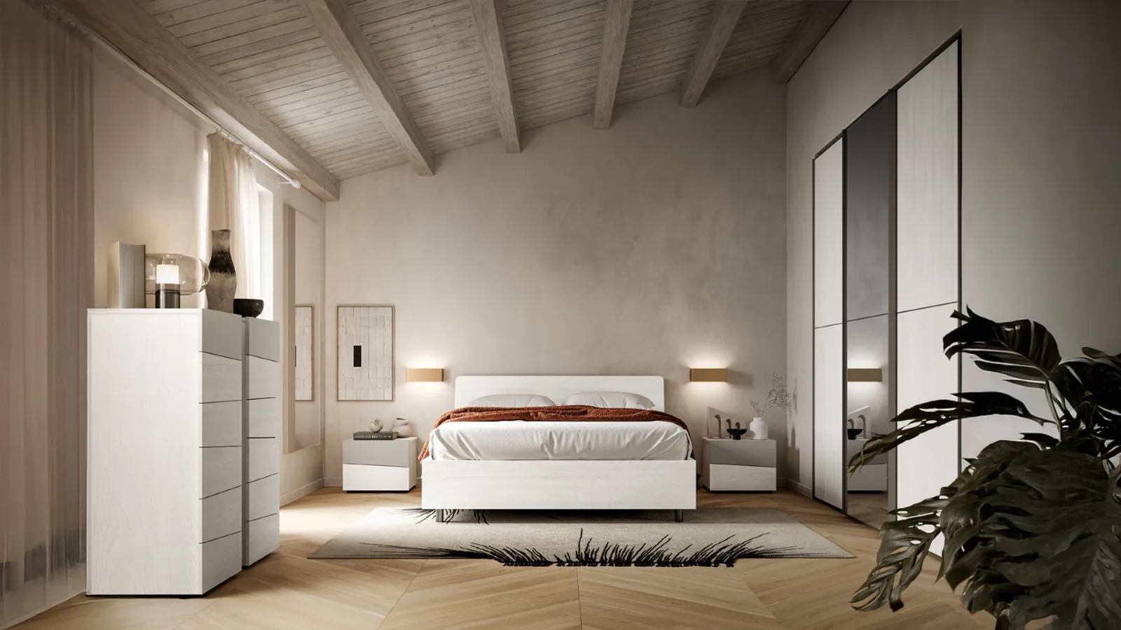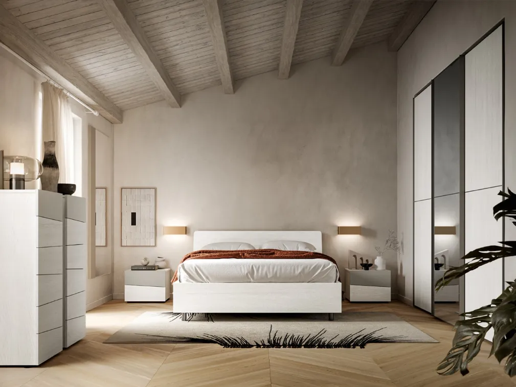 Materiali durevoli e lavorazioni eccellenti per il Gruppo Notte Ambra di SantaLucia in in melaminico, disponibile in showroom insieme alle altre varie proposte della marca, per fare della camera da letto un luogo che rispecchi i tuoi gusti. Ti chiedi come abbinare letti, armadi e comò? Con il modello di SantaLucia presente in foto avrai un mobile appropriato per uno spazio dai richiami moderni.