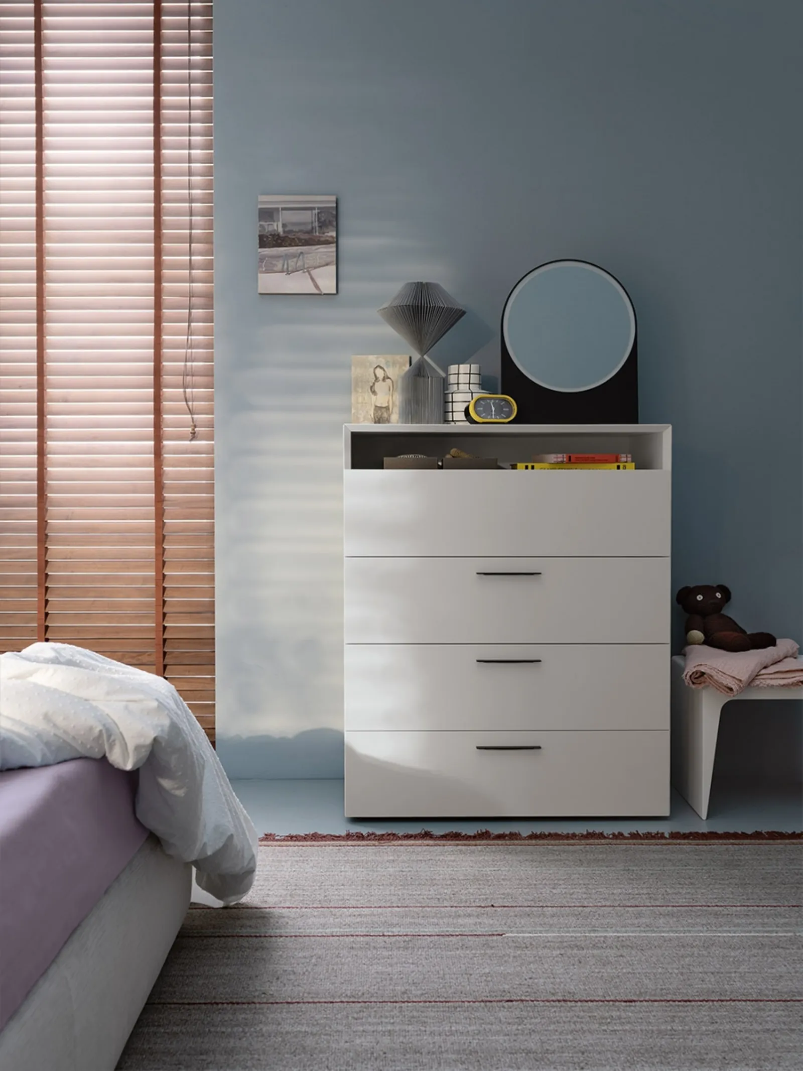 Con i nostri gruppi notte moderni del marchio Md House, leader dell’Arredamento Casa per la zona notte, potrai ricreare la camera da letto che hai sempre voluto. Ottimizza i tuoi spazi scegliendo composizioni di arredi abbinati o crea originali accostamenti di stile e cromie con il catalogo di mobili e oggetti accessori per la zona notte che proponiamo, come il modello in laccato opaco presente in foto, anche realizzabili su misura. Cassettiera Avenue Night di Md House: contattaci e ottieni informazioni sulle nostre proposte d'arredo e arreda la camera come l'avevi immaginata. La zona notte contiene anche i Comodini: arredi contenitivi utilissimi che danno modo di ordinare piccole cose e potere ususfruire di piani di appoggio per vari utilizzi.