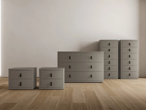 Vuoi progettare la camera da letto con Comodini e mobili con cassetti di Adok? Eccoti il modello Cassettiera Loop in melaminico per spazi moderni.