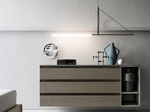 Comò Aria sospeso di Adok: si tratta di un tipo di mobile contenitivo versatile e capace di assicurarti praticità e un'ottima resa estetica in spazi design. I Comodini sono alcuni dei mobili e complementi imprescindibili in ogni zona notte, poiché permettono di completare gli spazi valorizzando ogni angolo. I modelli in melaminico dell'azienda Adok, specialista nella realizzazione di armadi e comò, permettono di ricreare abbinamenti ad hoc oppure avere caratteristiche in netto e voluto contrasto con il resto degli arredi. Scopri di più sulla nostra linea di gruppi notte dei migliori brand per ottimizzare gli spazi con un design unico.