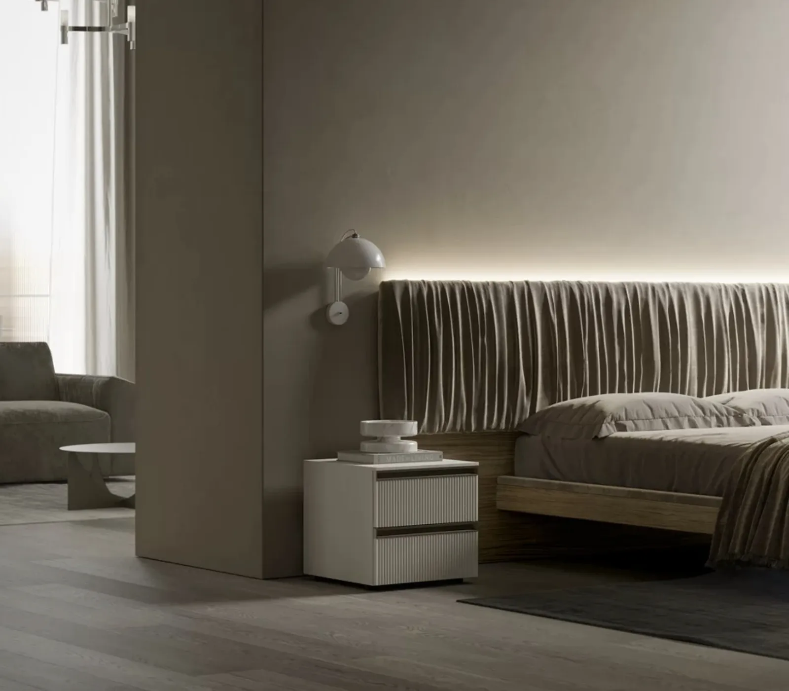 La camera da letto contiene anche i Comodini: arredi contenitivi strategici che lasciano la possibilità di riporre piccole cose e potere ususfruire di superfici di appoggio per vari utilizzi. Comodino Ego 02 di SantaLucia: contattaci e scopri di più sulle nostre composizioni e arreda la camera come l'avevi sognata. Ottimizza i tuoi locali scegliendo composizioni di oggetti abbinati oppure ricrea voluti abbinamenti di stile e tonalità con il catalogo di mobili ed elementi accessori per la camera da letto che proponiamo, come il modello in laccato opaco presente in foto, anche realizzabili su misura.