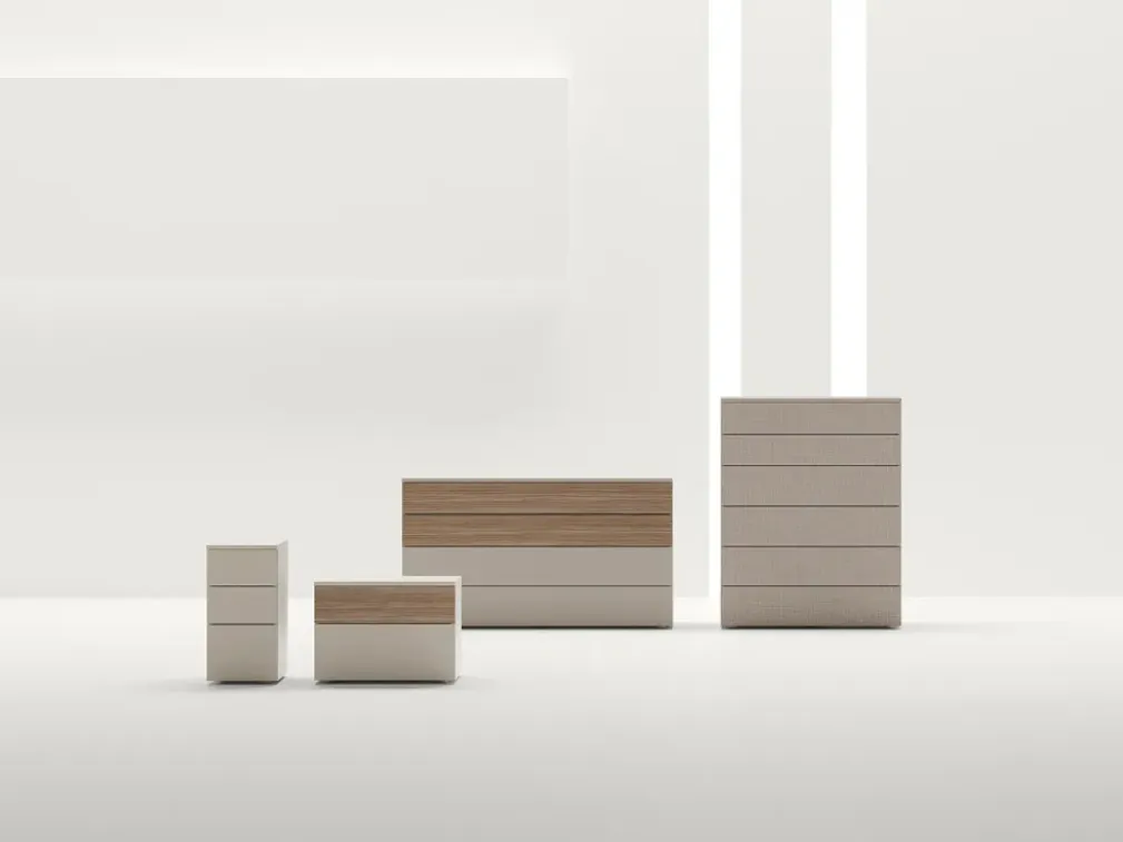 Vuoi allestire la camera da letto con Comodini e cassettiere di Adok? Ecco qui il modello Gruppo Notte Flat in melaminico per spazi moderni.