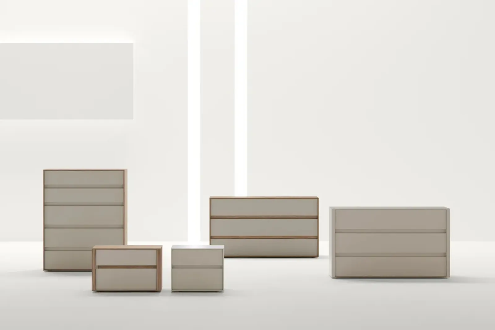 Un ricco catalogo di cassettiere Adok: i comodini moderni in laccato opaco, come Gruppo Notte Unique, sono tra le proposte più esclusive.