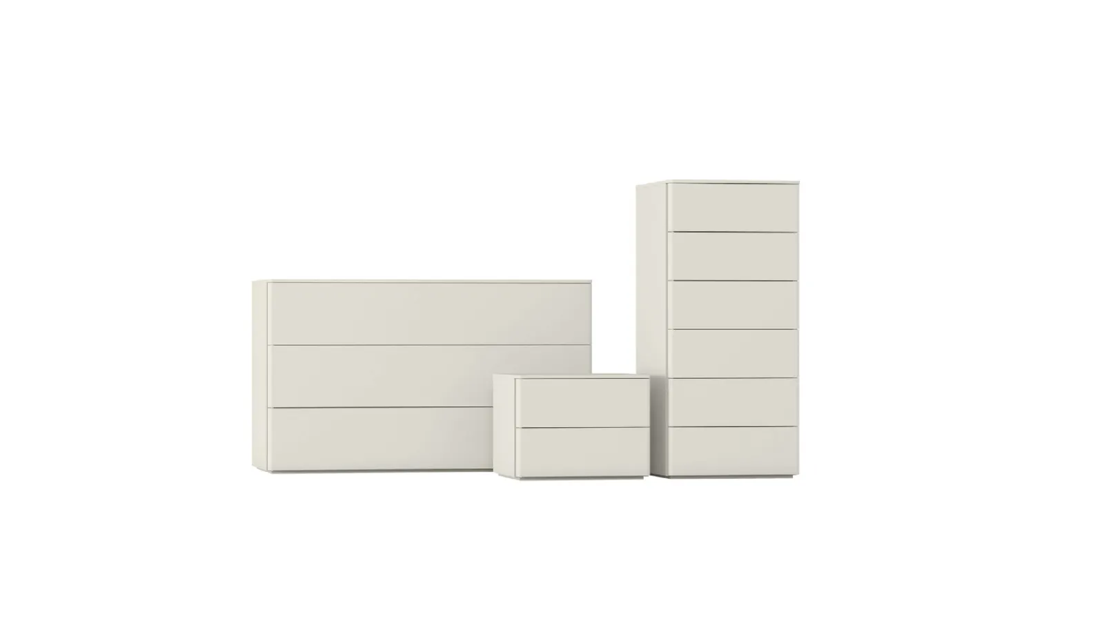 Vuoi progettare la camera da letto con Comodini e cassettiere di Cinquanta3? Ecco qui il modello Londra Gruppo Notte in melaminico per spazi moderni.