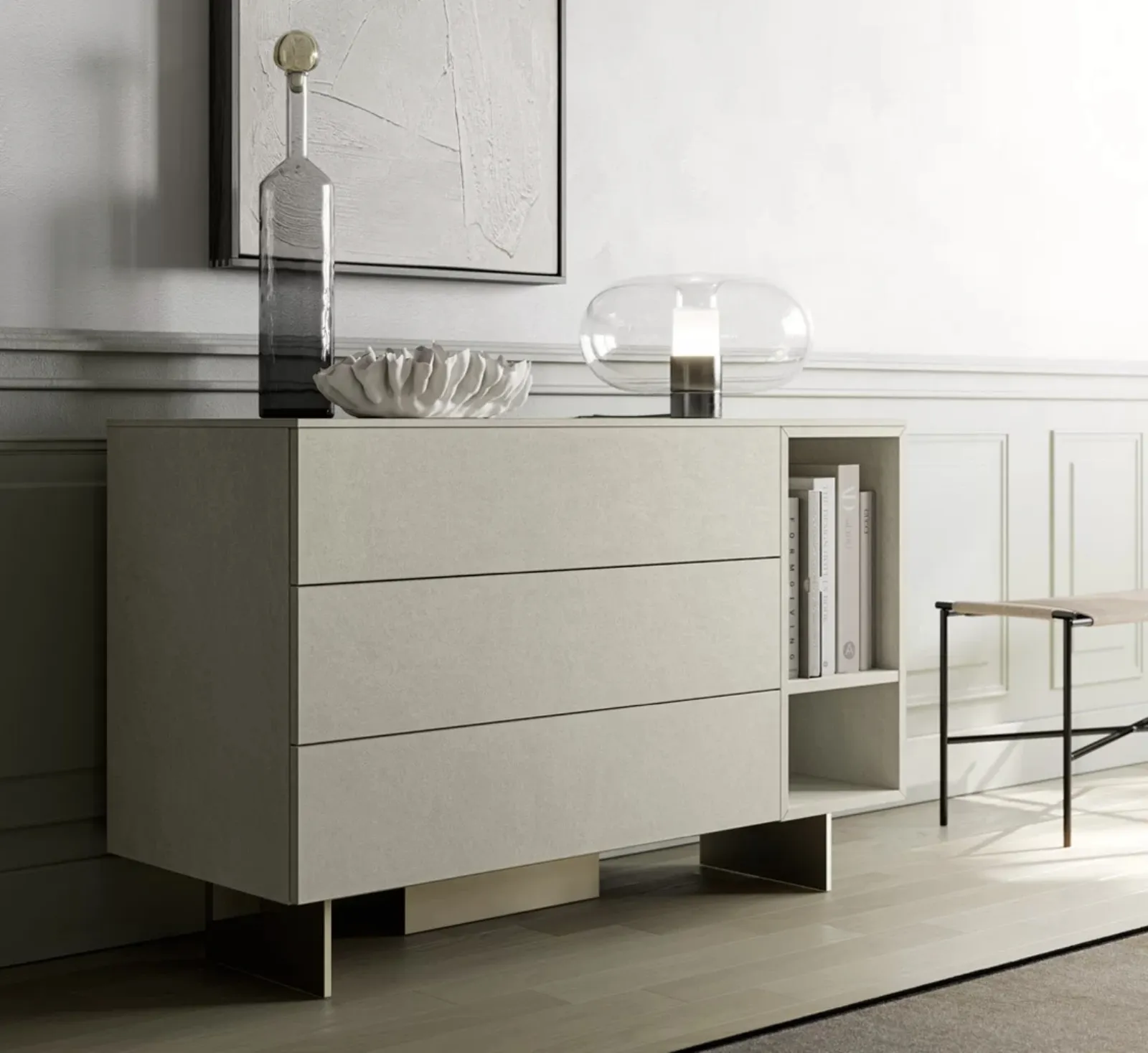 Un ricco catalogo di mobili con cassetti SantaLucia: i comodini moderni in laccato opaco, come Sistema Ventidue Comò, sono tra le soluzioni più originali.
