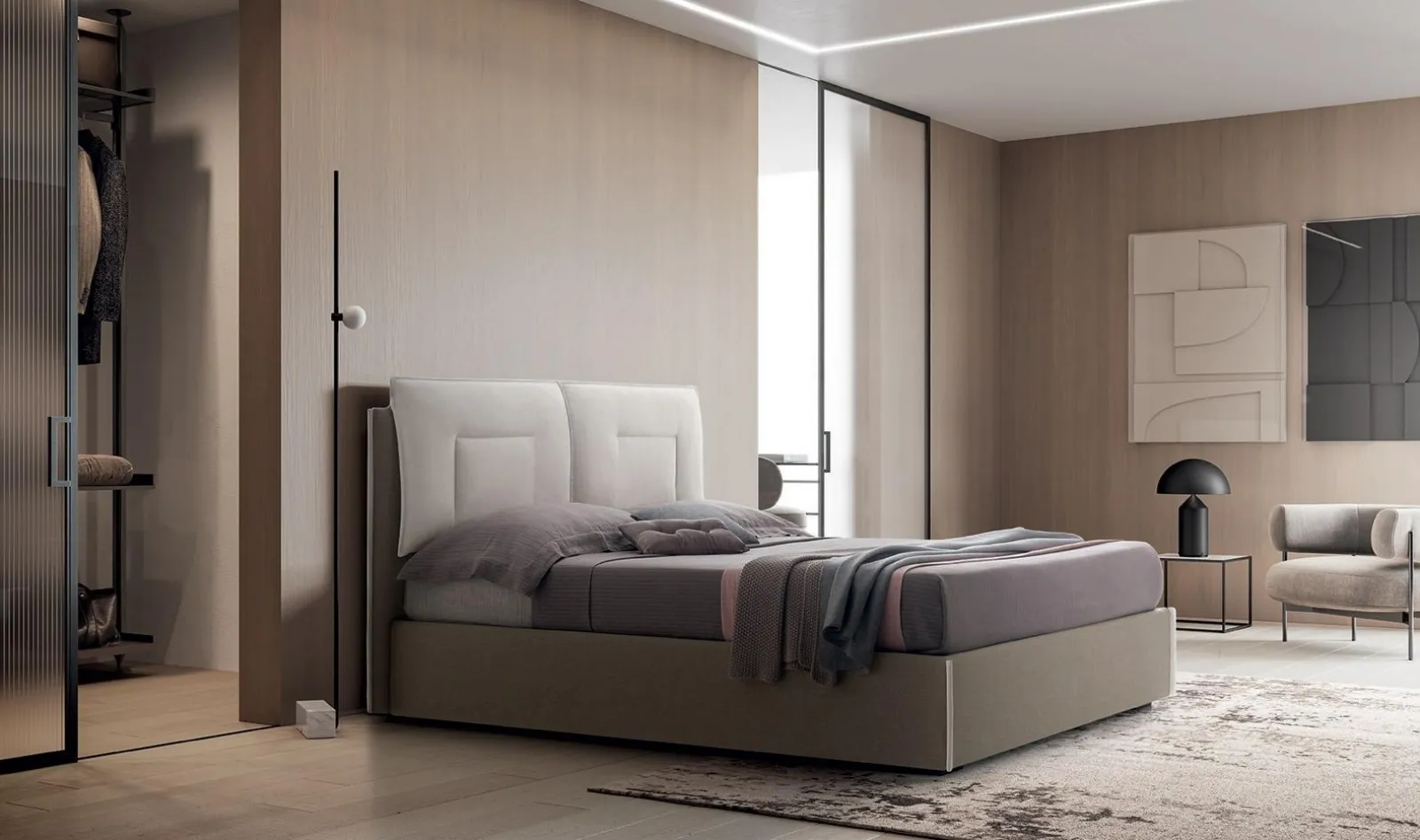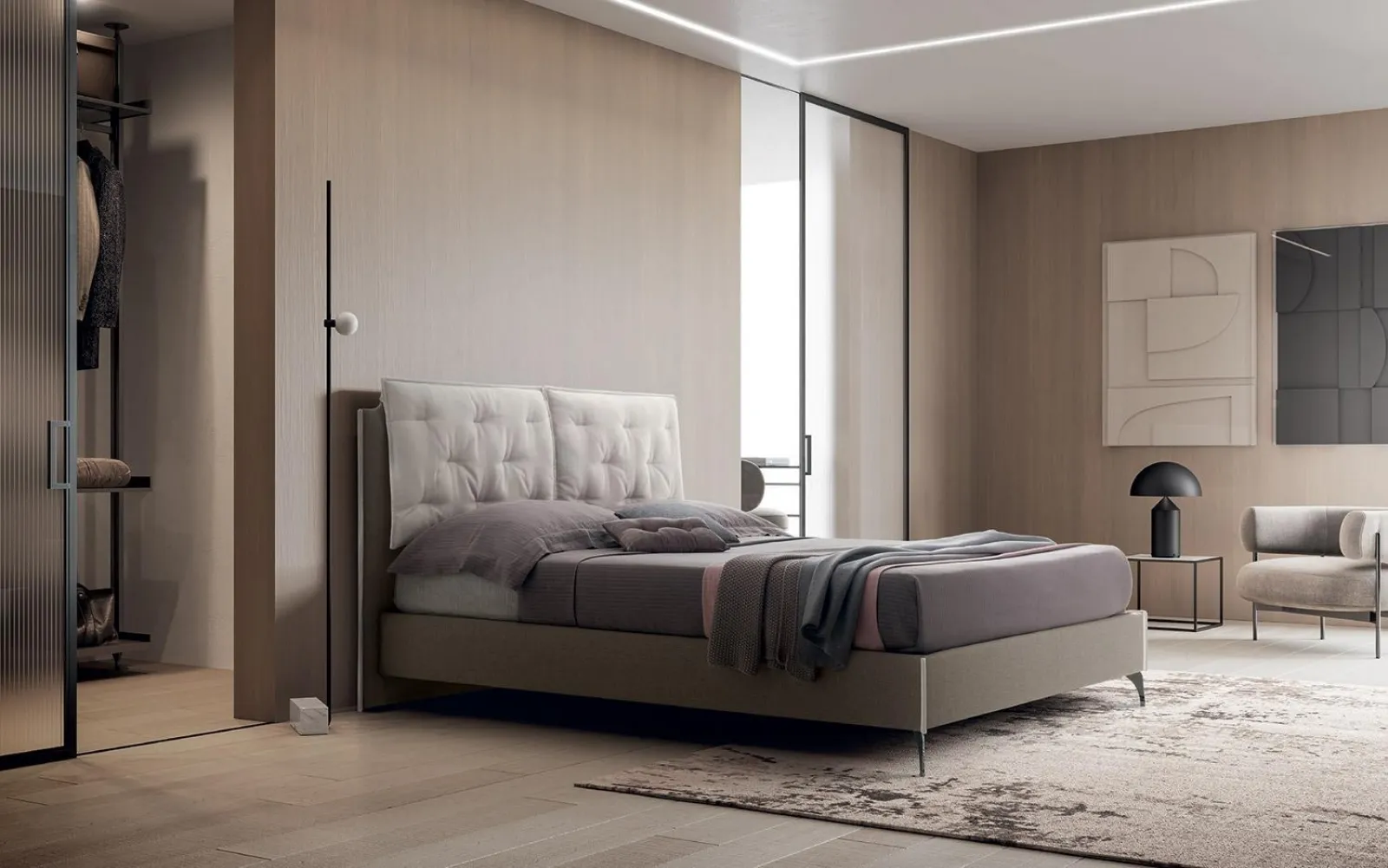 Se cerchi letti a una piazza e mezza imbottiti, ecco qui il modello Arley in tessuto per valorizzare la zona notte.