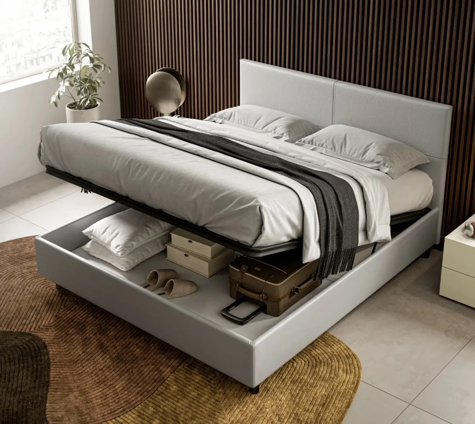 Clicca e scopri i Letti con contenitore di SantaLucia! Il modello Bora in ecopelle ti sta aspettando nelle versioni matrimoniali.