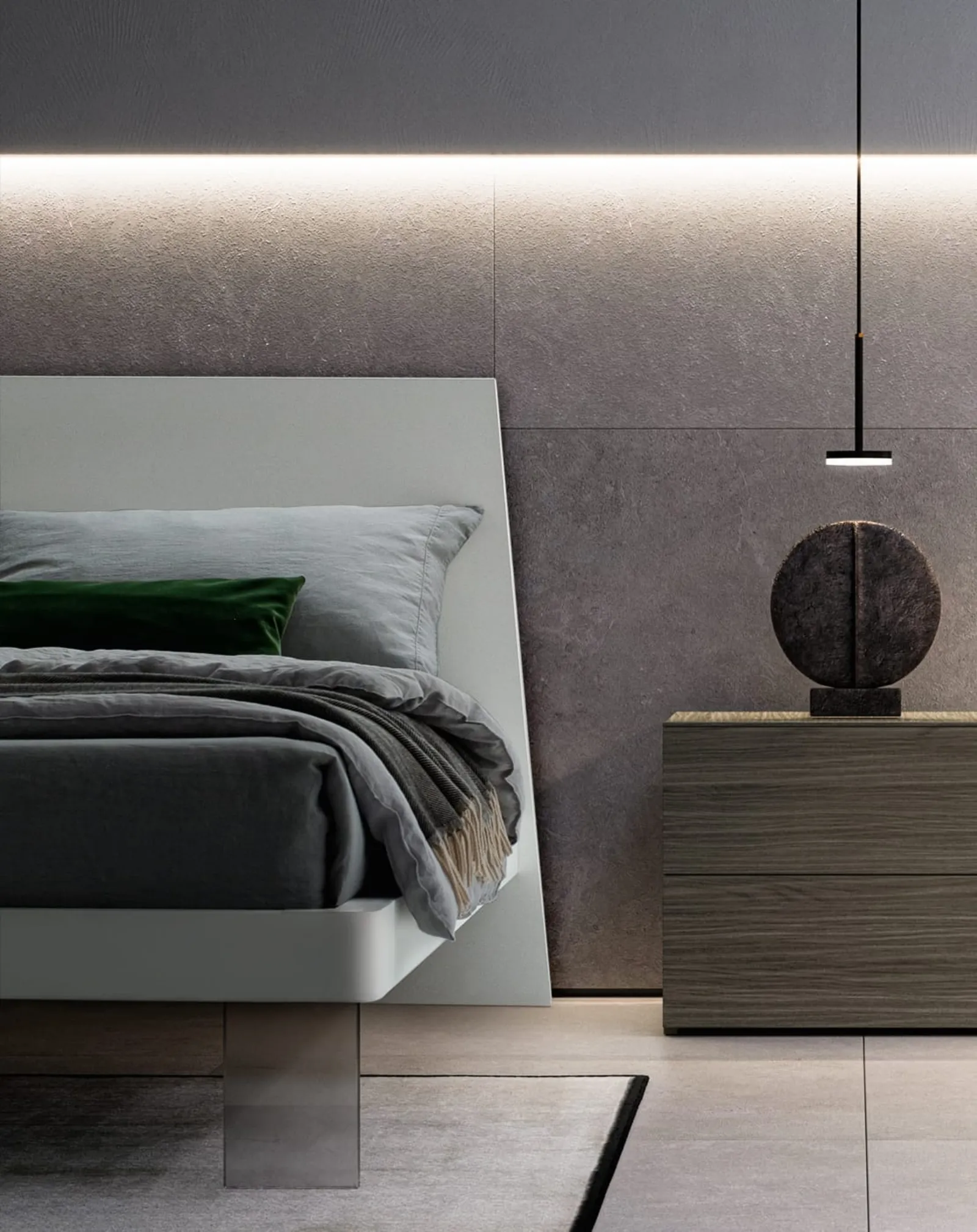 Il letto Levante in melaminico, tra i modelli con testiera matrimoniali design di SantaLucia, è perfetto per garantirti il riposo migliore.